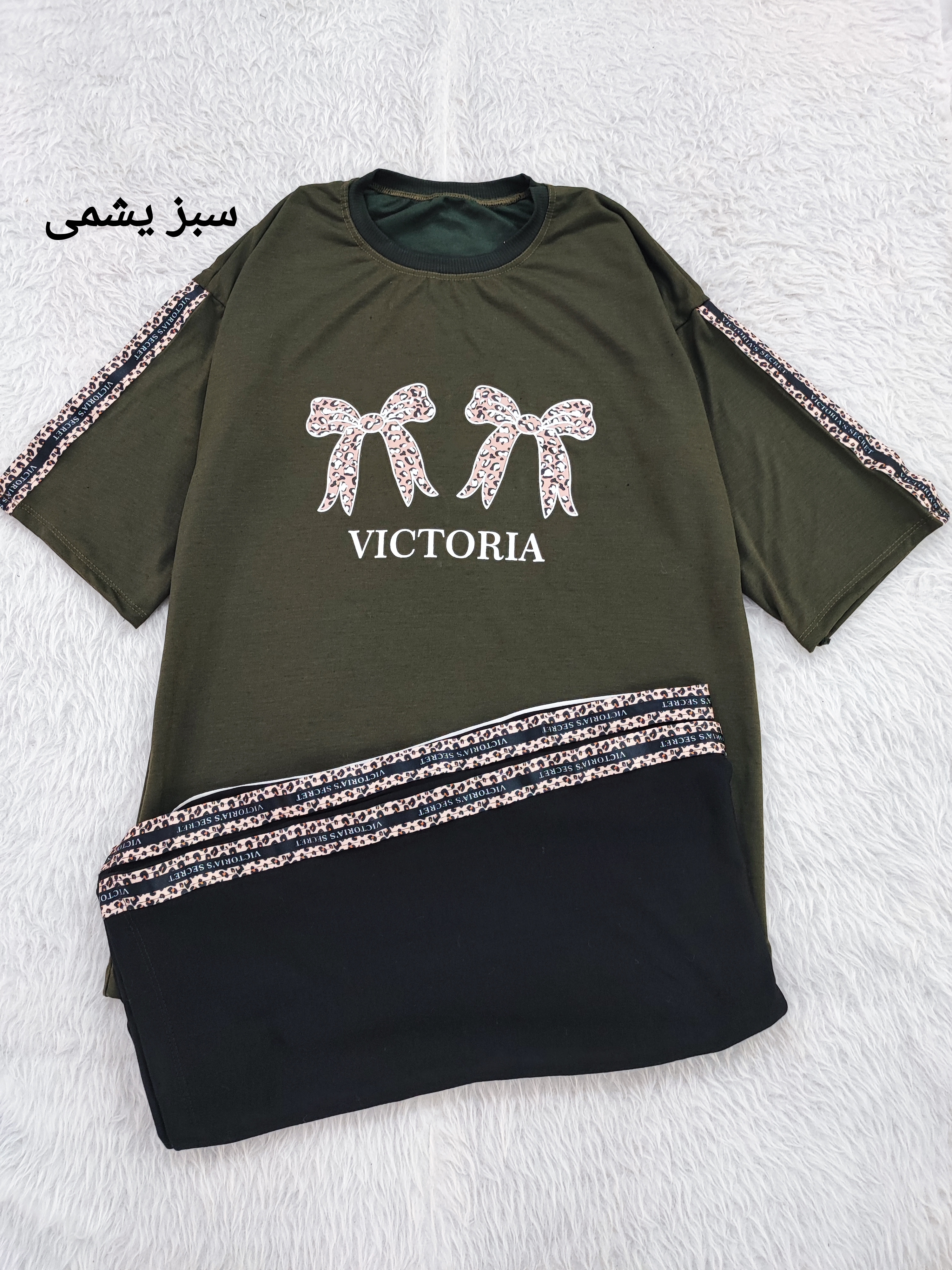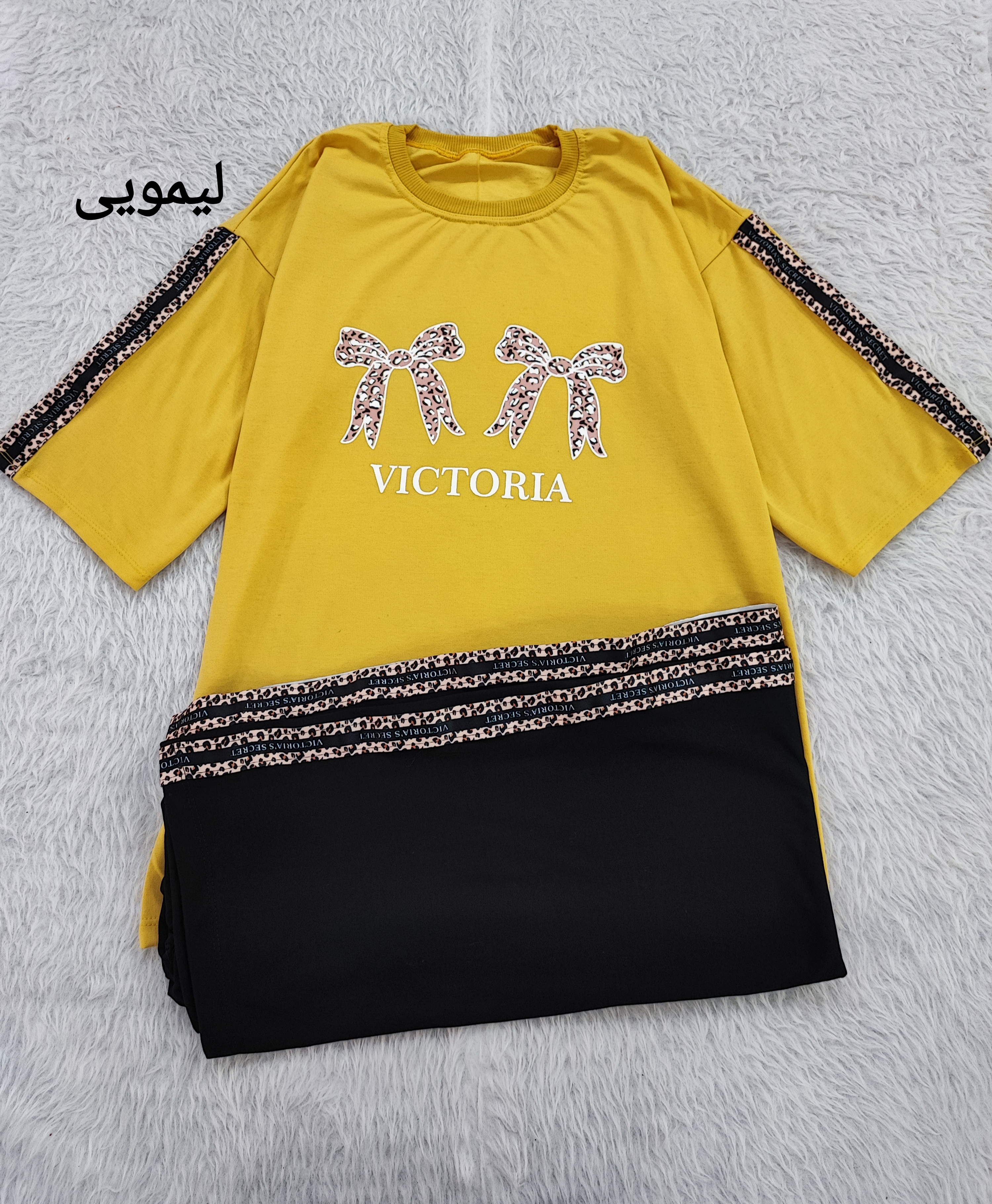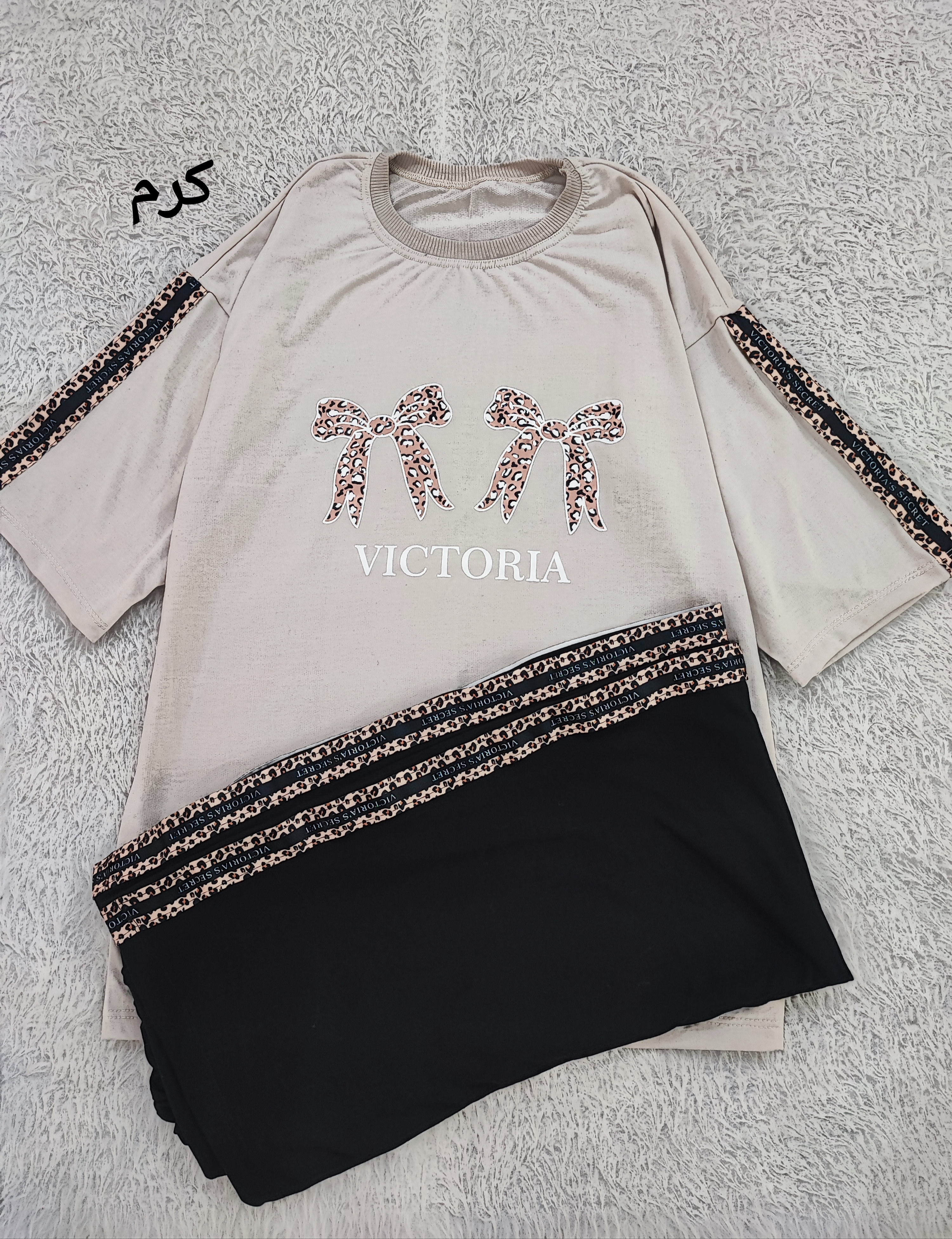ست تیشرت شلوار دورس لانگ پاپیون فری تا سایز ۴۶ در ۶ رنگ زیبا با نواردوزی پلنگی روی سر آستین و کناره های شلوار با عرض سینه تیشرت ۵۵ و قد تیشرت ۷۴ و قد شلوار ۱۰۰ سانت