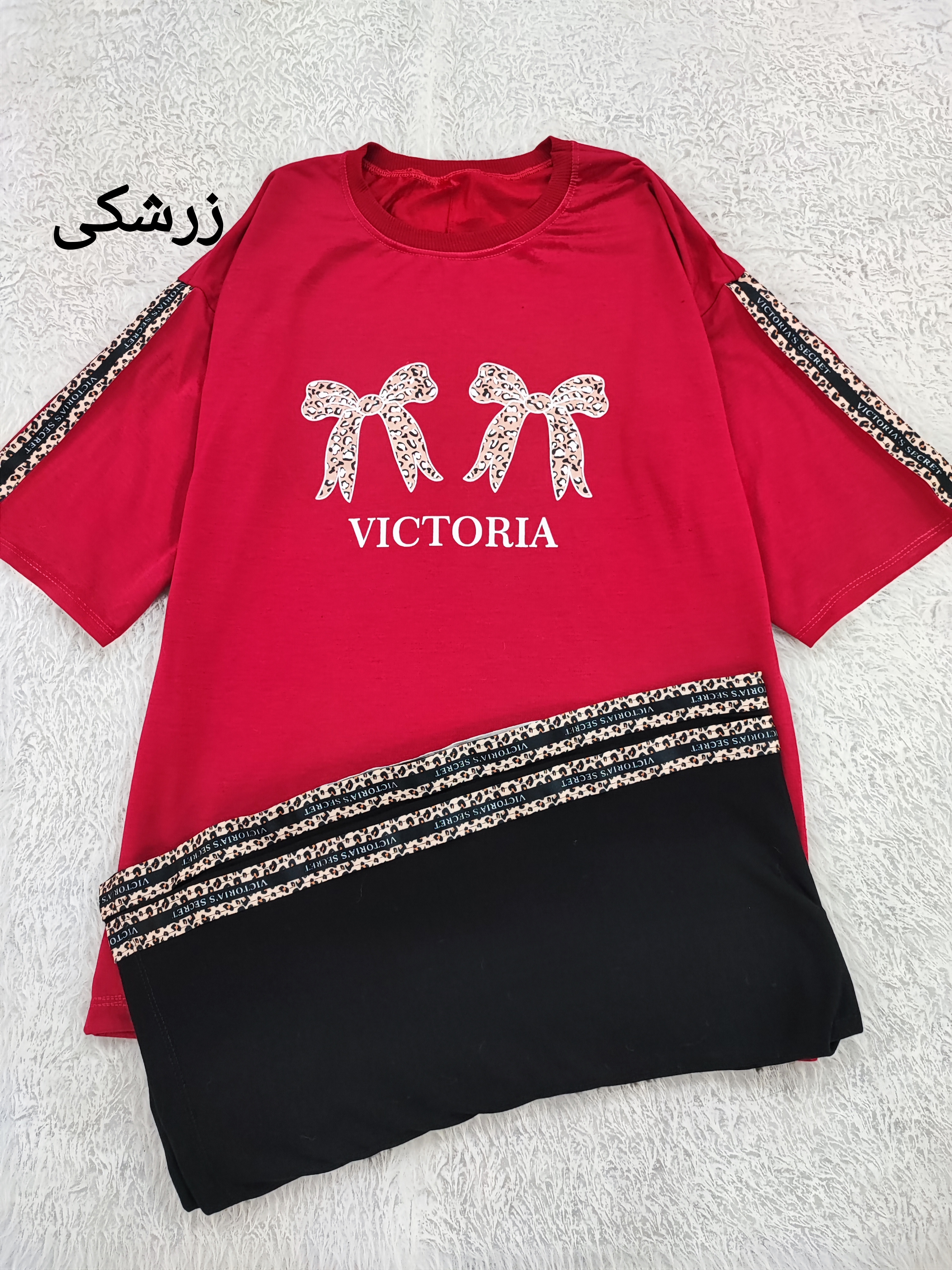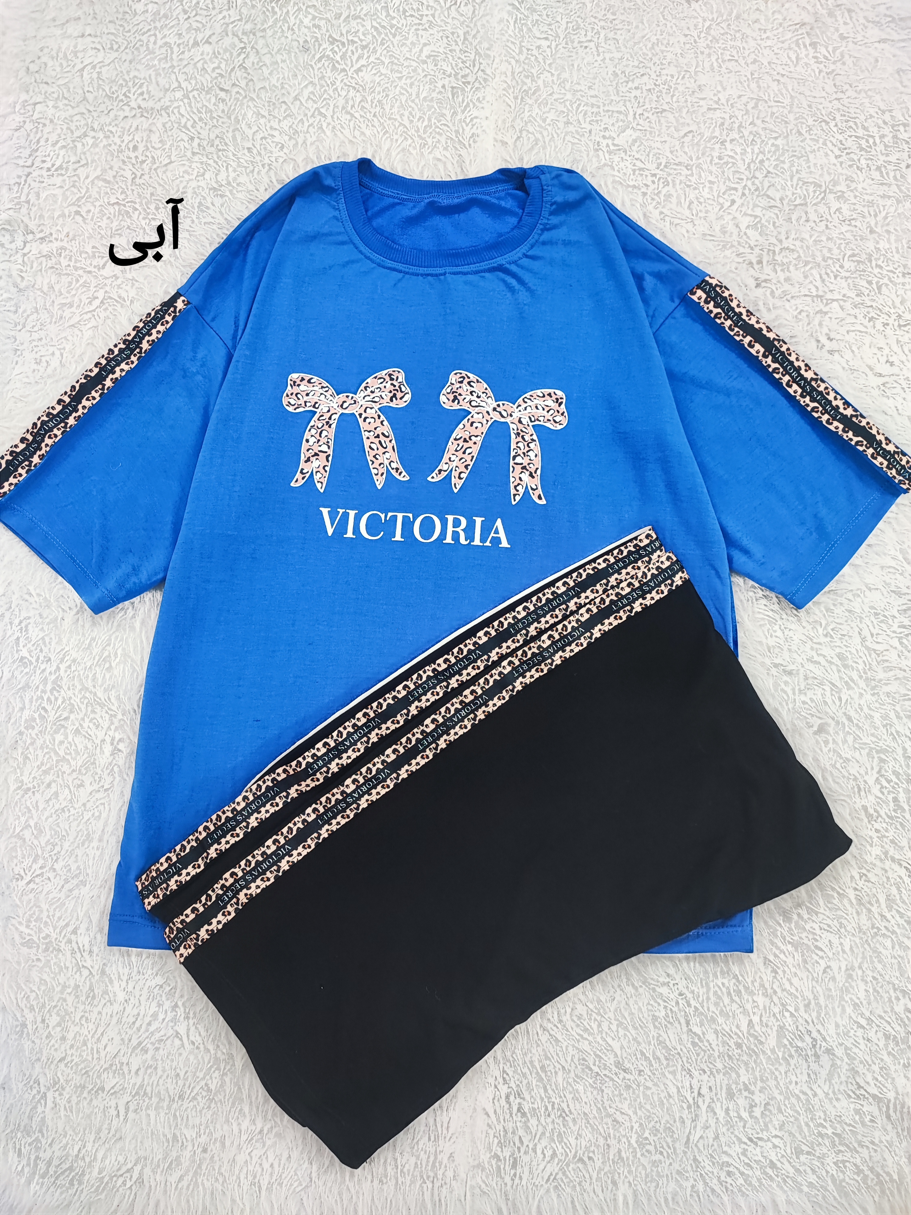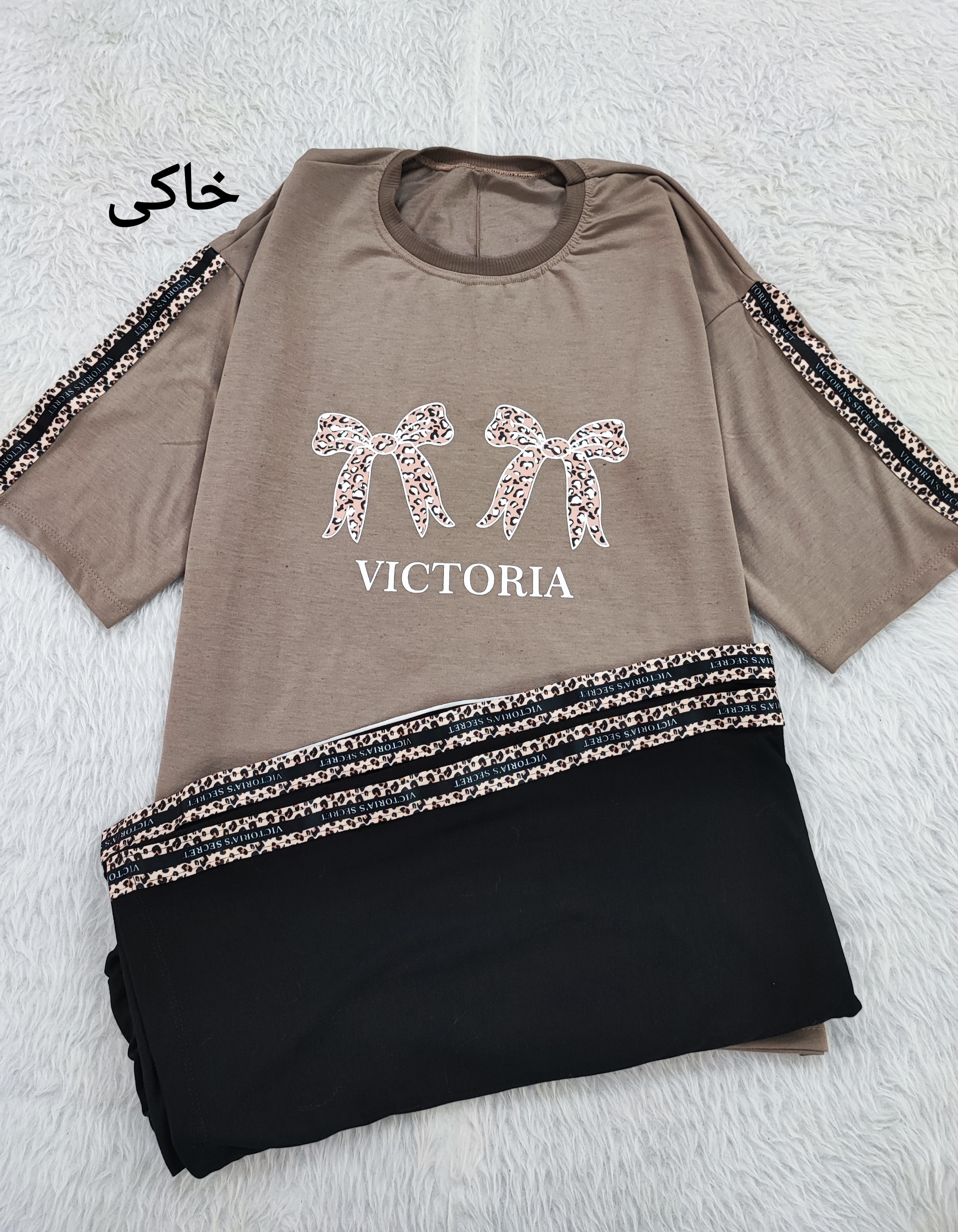 ست تیشرت شلوار دورس لانگ پاپیون فری تا سایز ۴۶ در ۶ رنگ زیبا با نواردوزی پلنگی روی سر آستین و کناره های شلوار با عرض سینه تیشرت ۵۵ و قد تیشرت ۷۴ و قد شلوار ۱۰۰ سانت