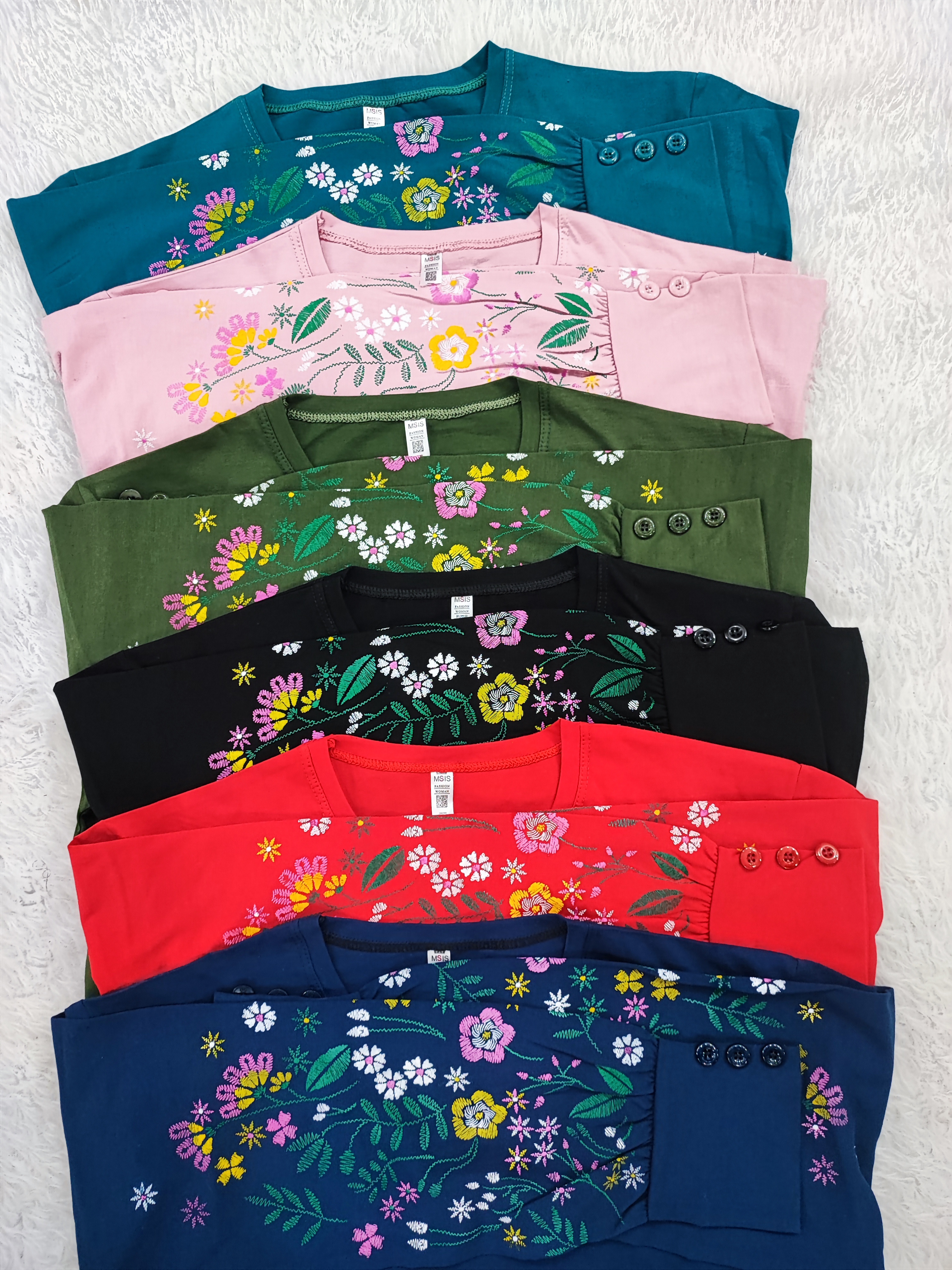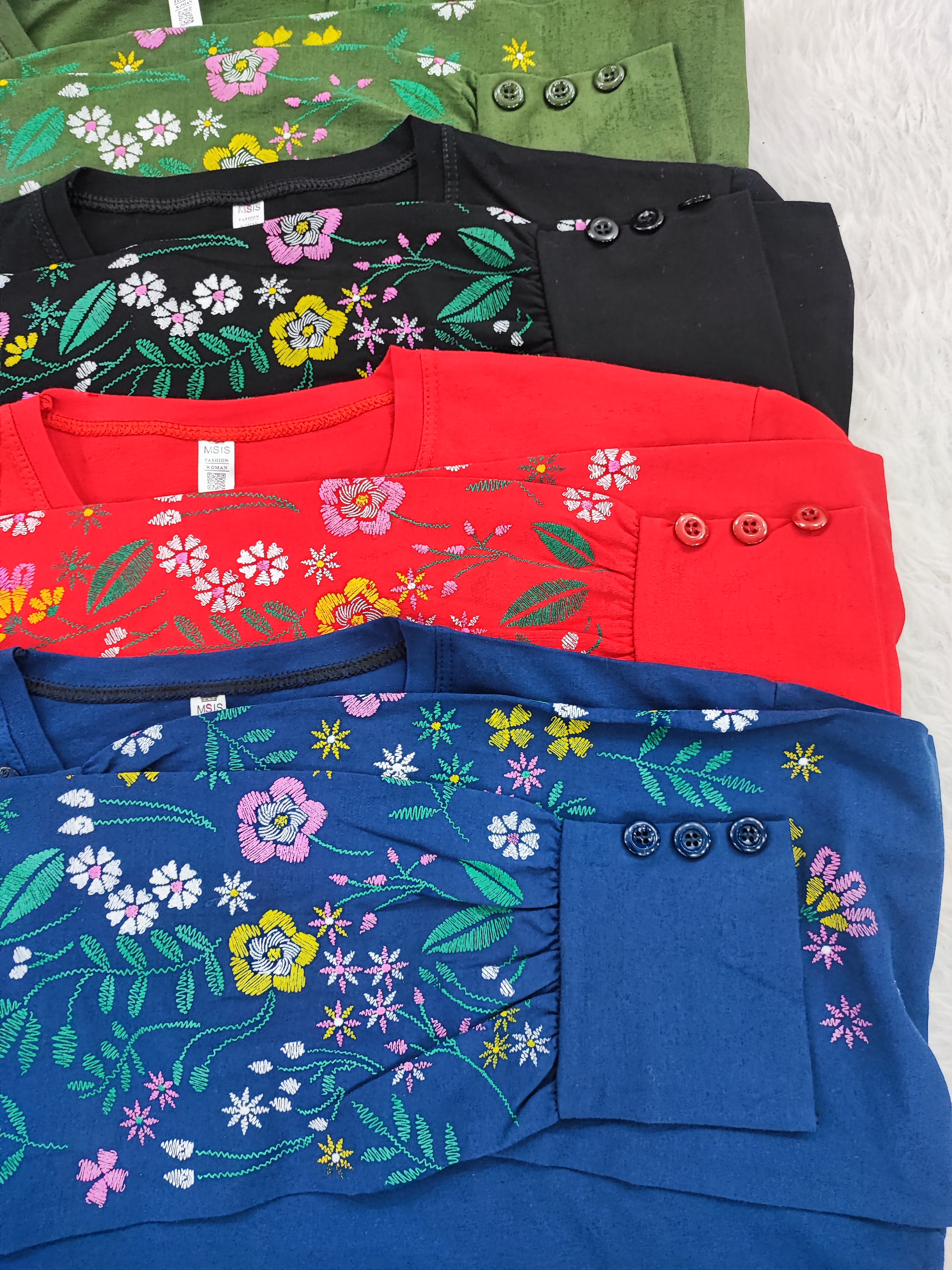 بلوز آستین بلند چاپ پفکی طرح گل مدل سر آستین سه دکمه با جنس نخ پنبه سوپر اعلا فری تا سایز ۴۶ با عرض سینه ۵۴ و قد ۷۰ سانت در ۶ رنگ زیبا که با جنس نرم و لطیف و چاپ سه بعدی که هرگز پاک نمیشود زیبایی خاصی به شما میدهد