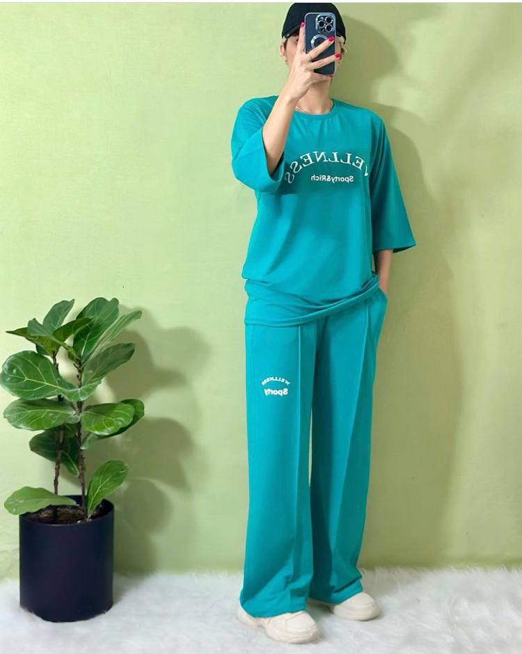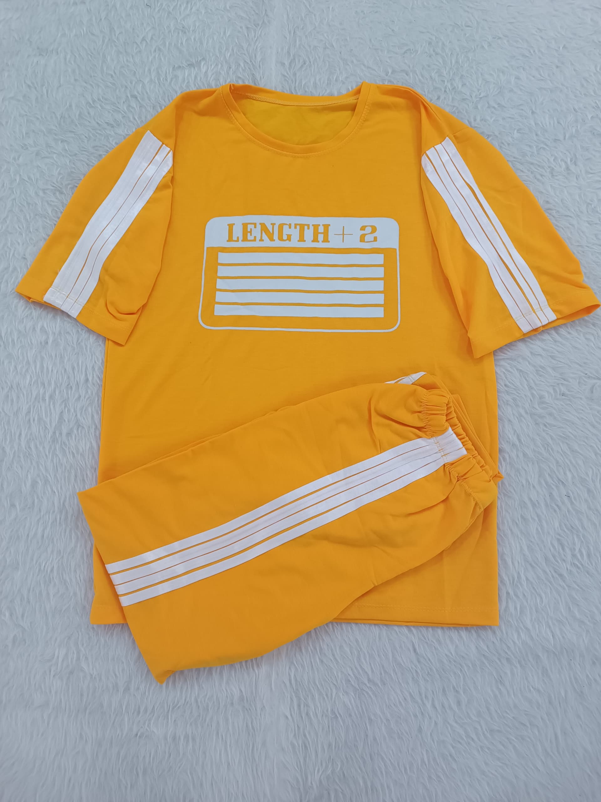 ست تیشرت شلوار دورس زنانه دخترانه فری تا سایز 44 در دو طرح ولنس و لنسچ در رنگبندی گلبهی و نارنجی و لیمویی
