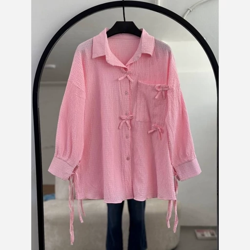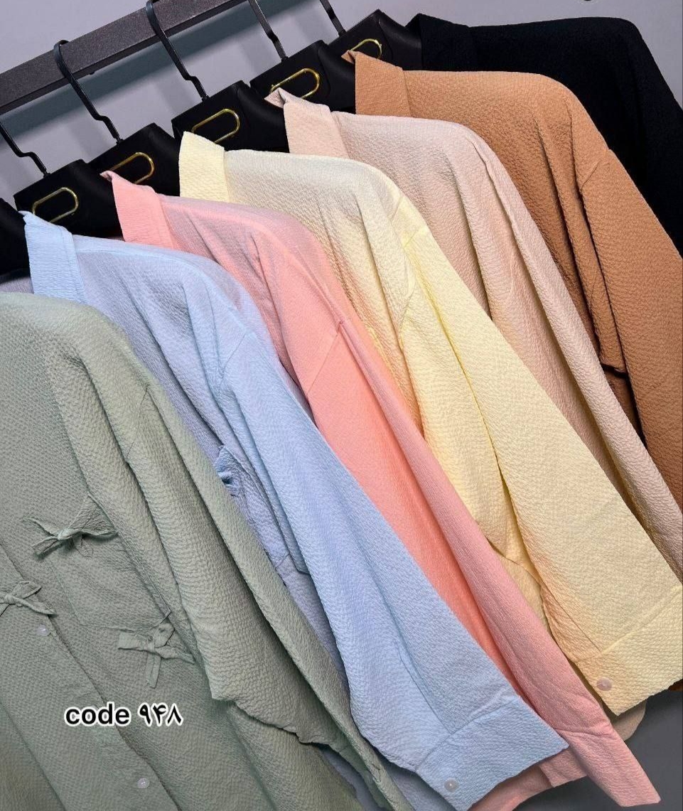 شومیز ایتالیایی پاپیونی زنانه جنس ینزی فری تا سایز ۴۶ با قد ۷۸ سانت در رنگبندی زیبا