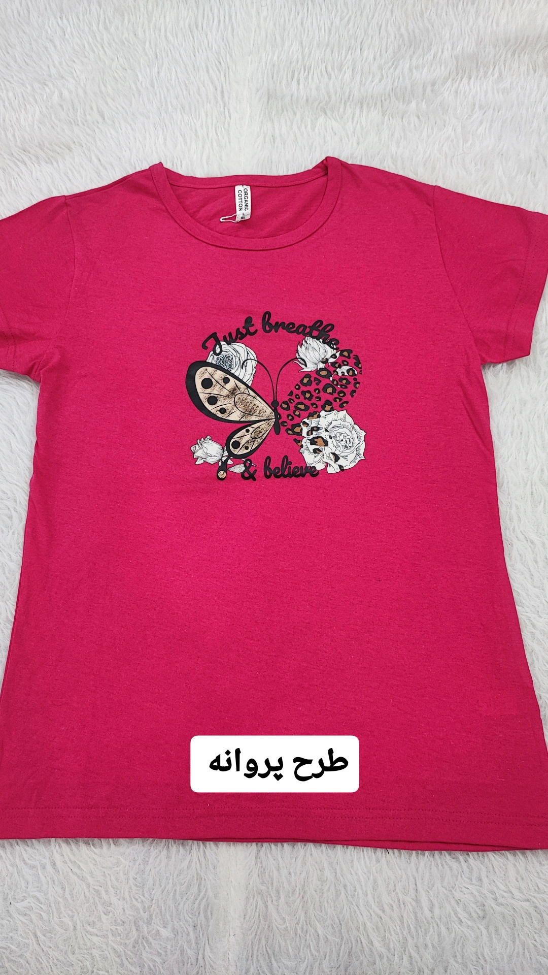تیشرت ترک خارجی با جنس پنبه ۱۰۰% در طرح های متنوع مناسب سایز L و XL ( فری از سایز ۳۶ تا سایز ۴۲) با عرض ۵۰ و قد ۷۰ سانت