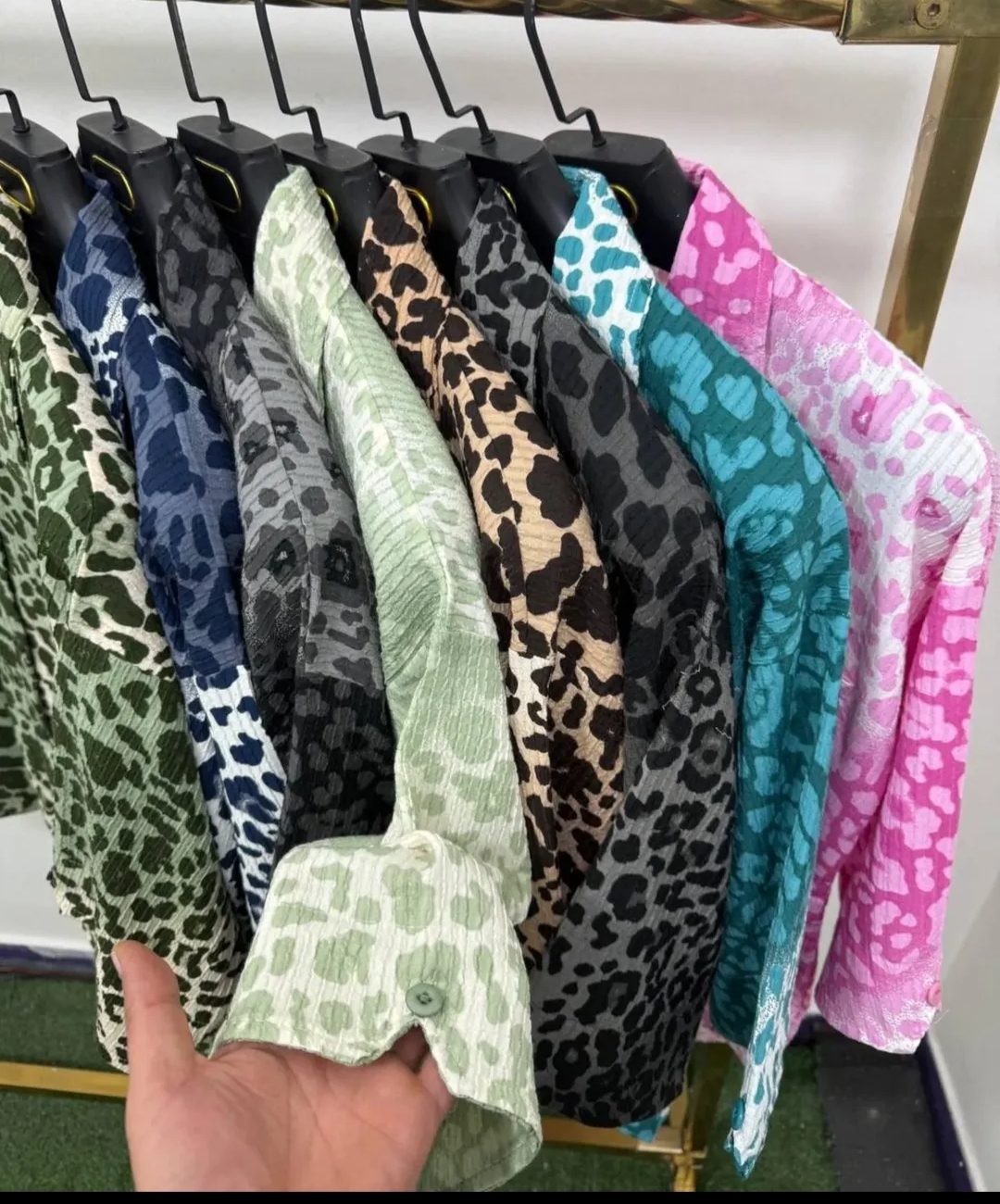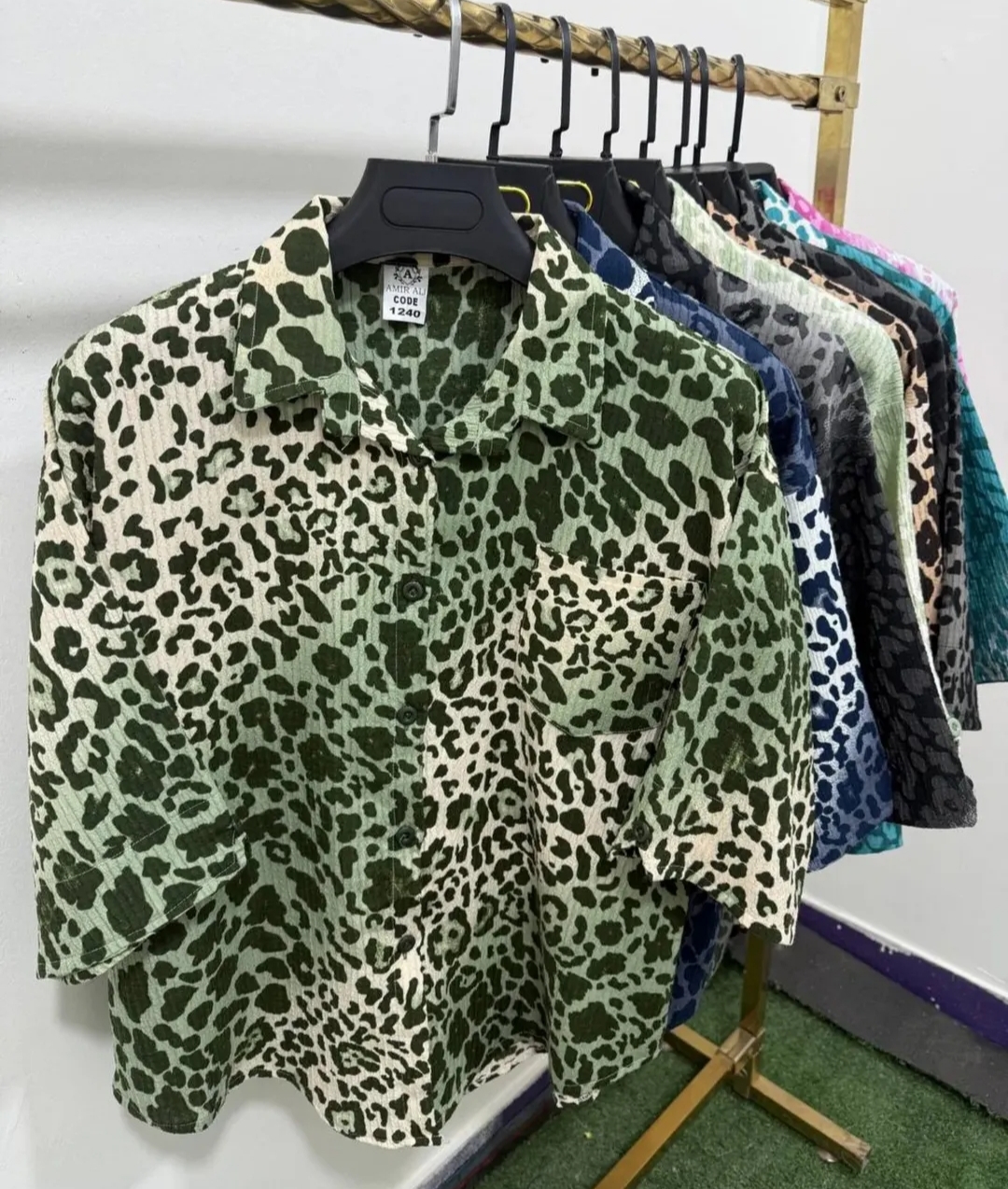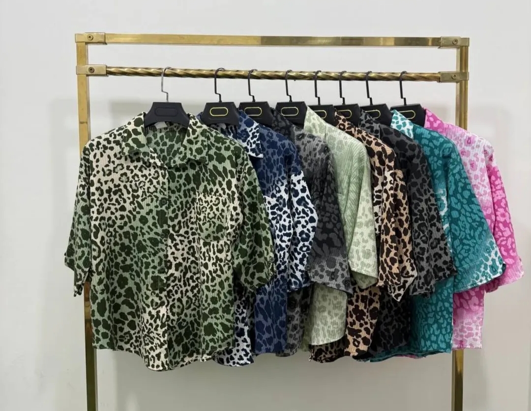 شومیز پلنگی پارچه ایتالیایی درجه یک نرم و لطیف و خنک تابستانه فری تا سایز ۴۴ با قد ۷۰ سانت در رنگبندی متنوع با تنخور عالی عکس آخر
