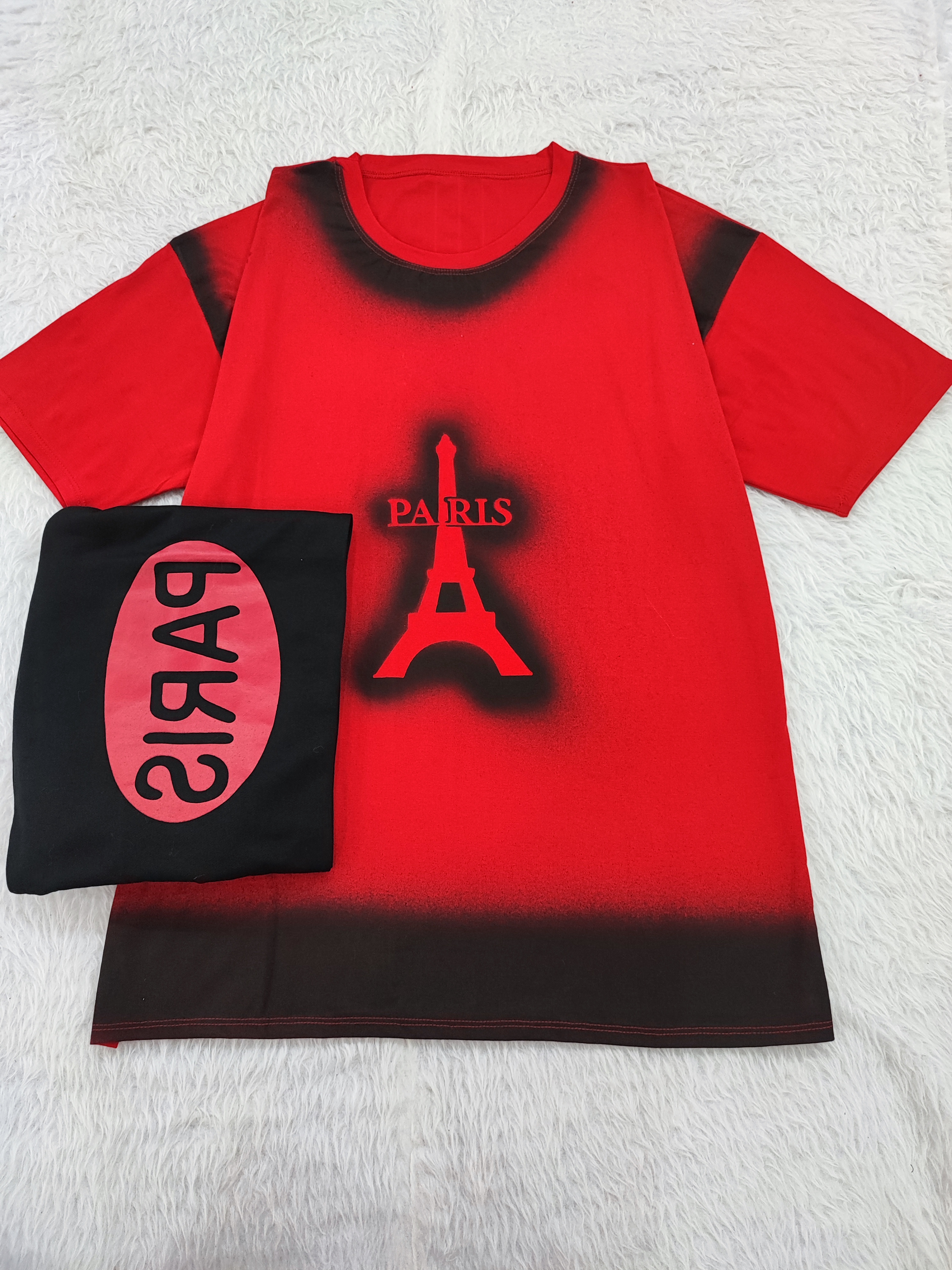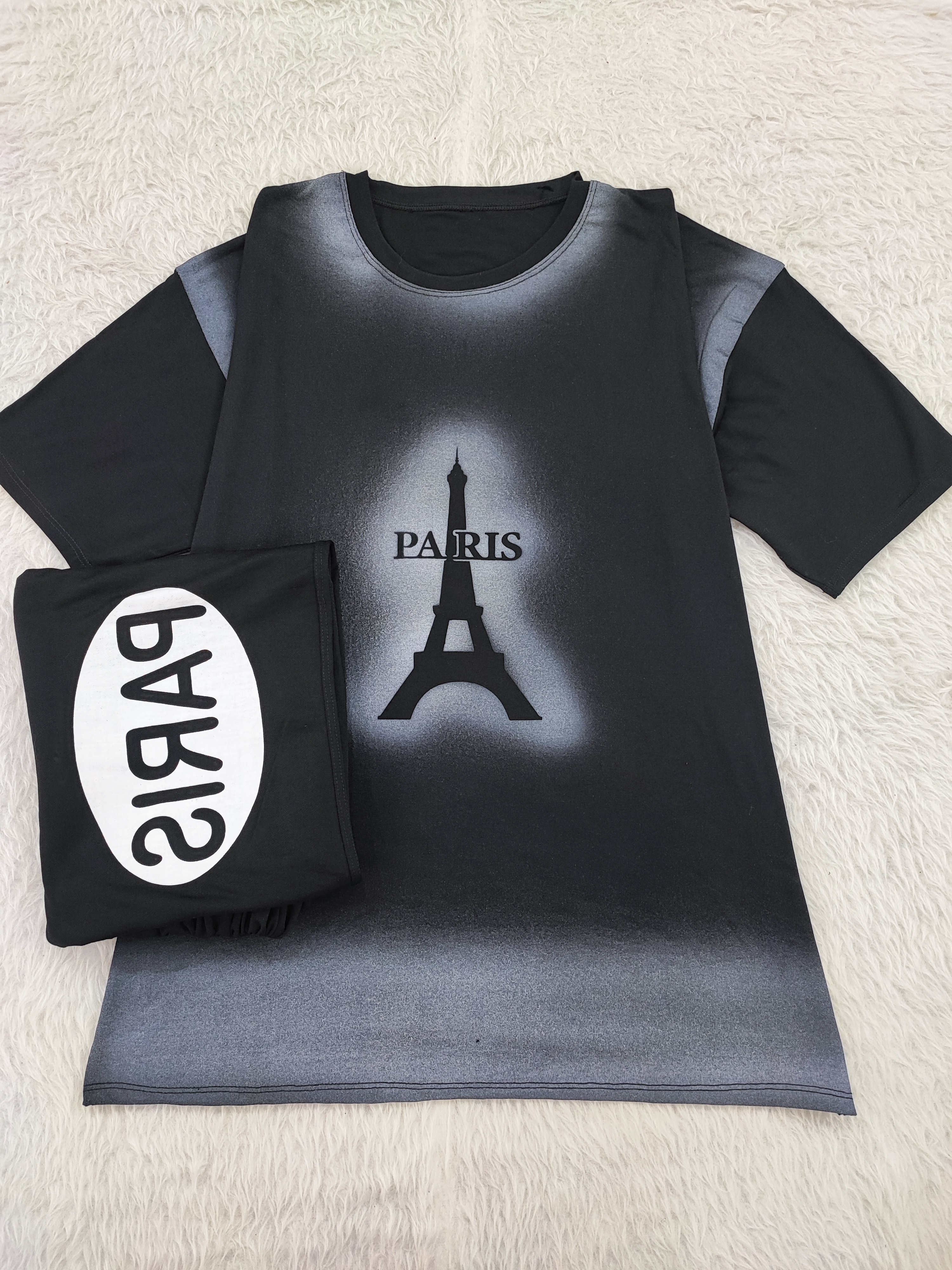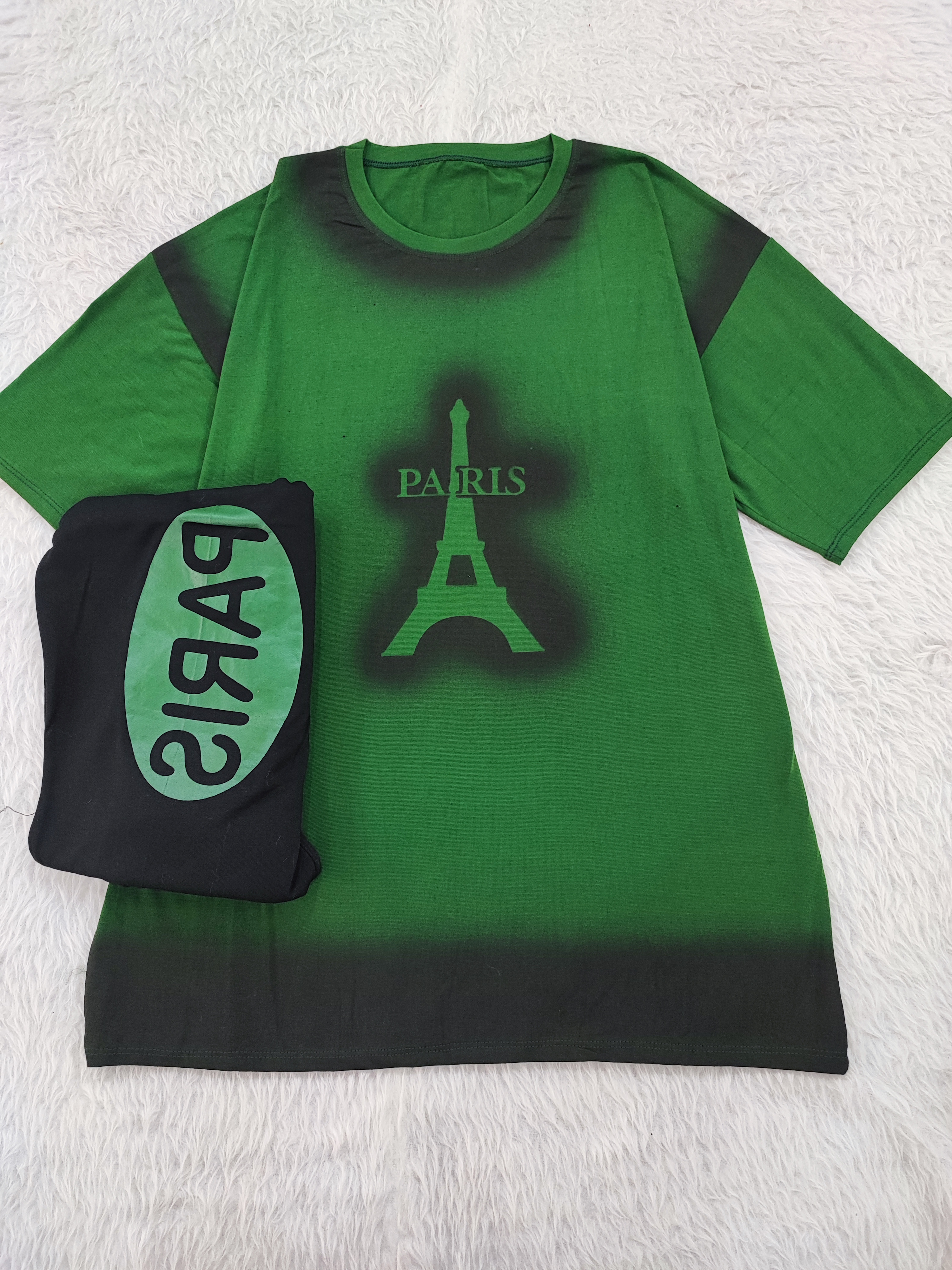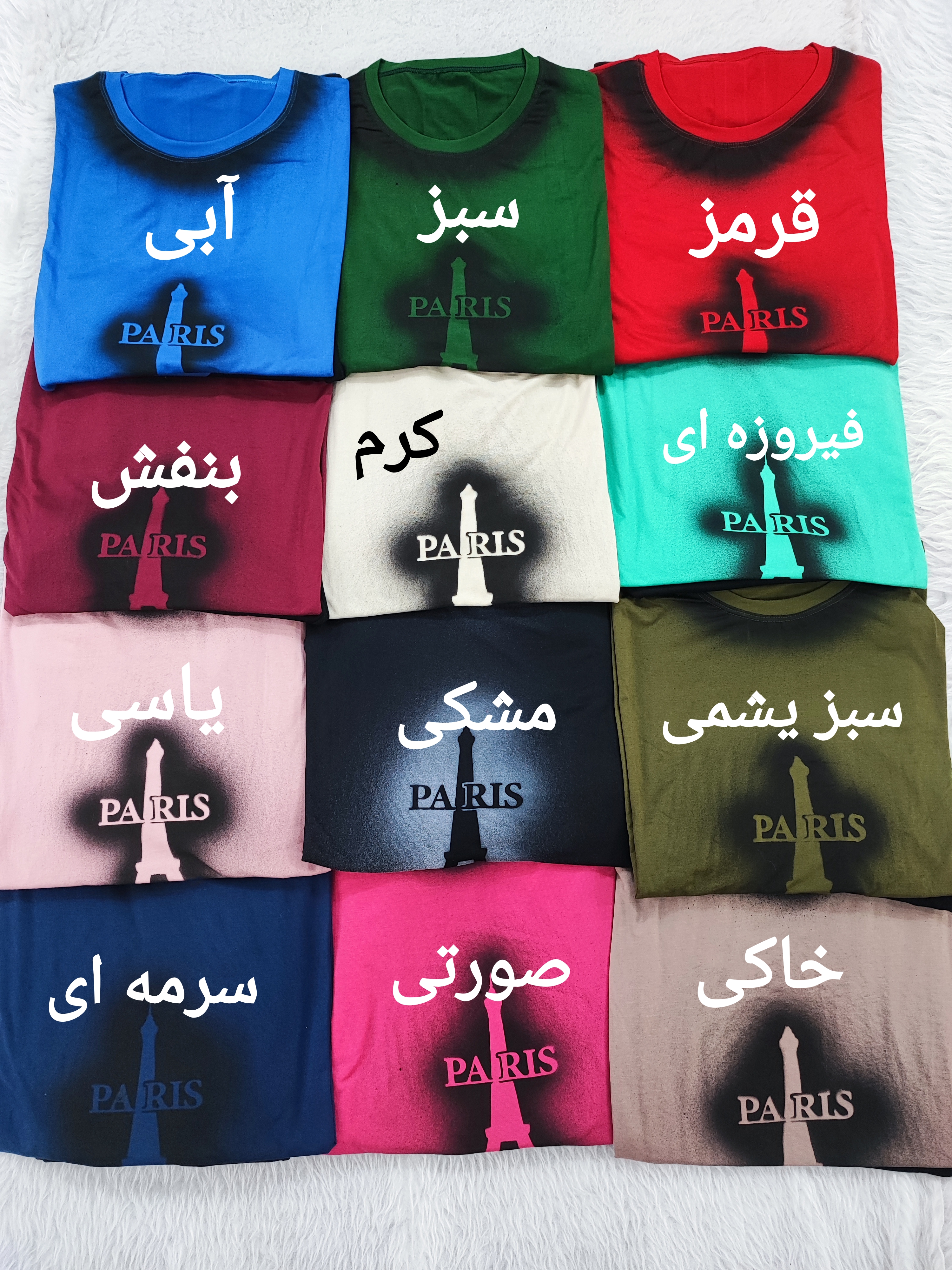 ست تیشرت شلوار بگ ایفل با جنس دورس نرم فری تا سایز ۴۸ مدل شلوار کمرکش جیب دار در رنگبندی عالی طبق جدول