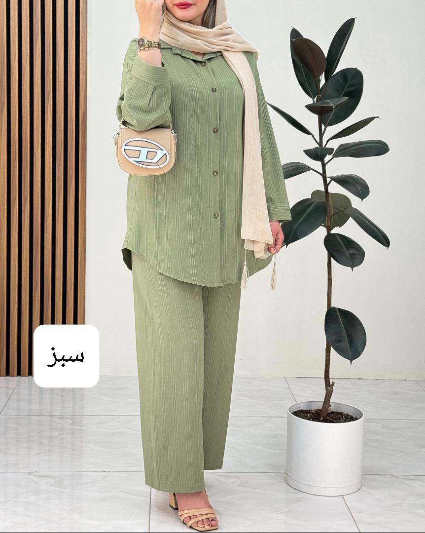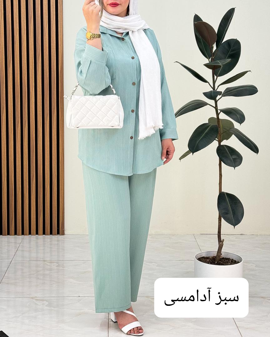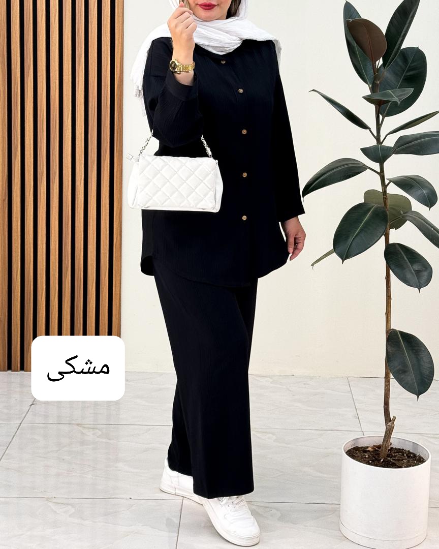 ست مانتو شلوار مدل جلو دکمه شلوار کمر کش راحت با پارچه بسیار با کیفیت فری تا سایز ۴۶ در رنگبندی عالی و تنخور زیبا