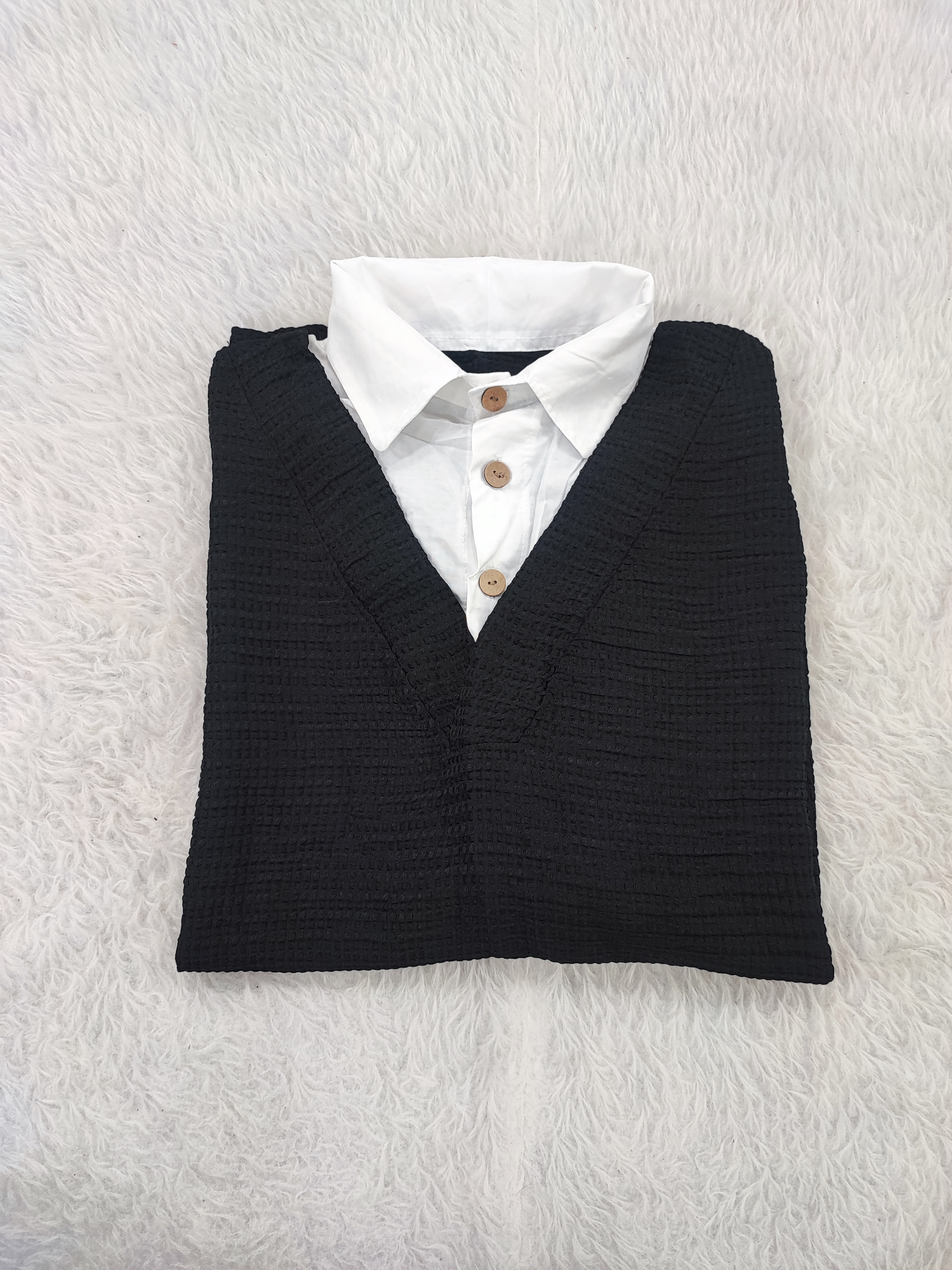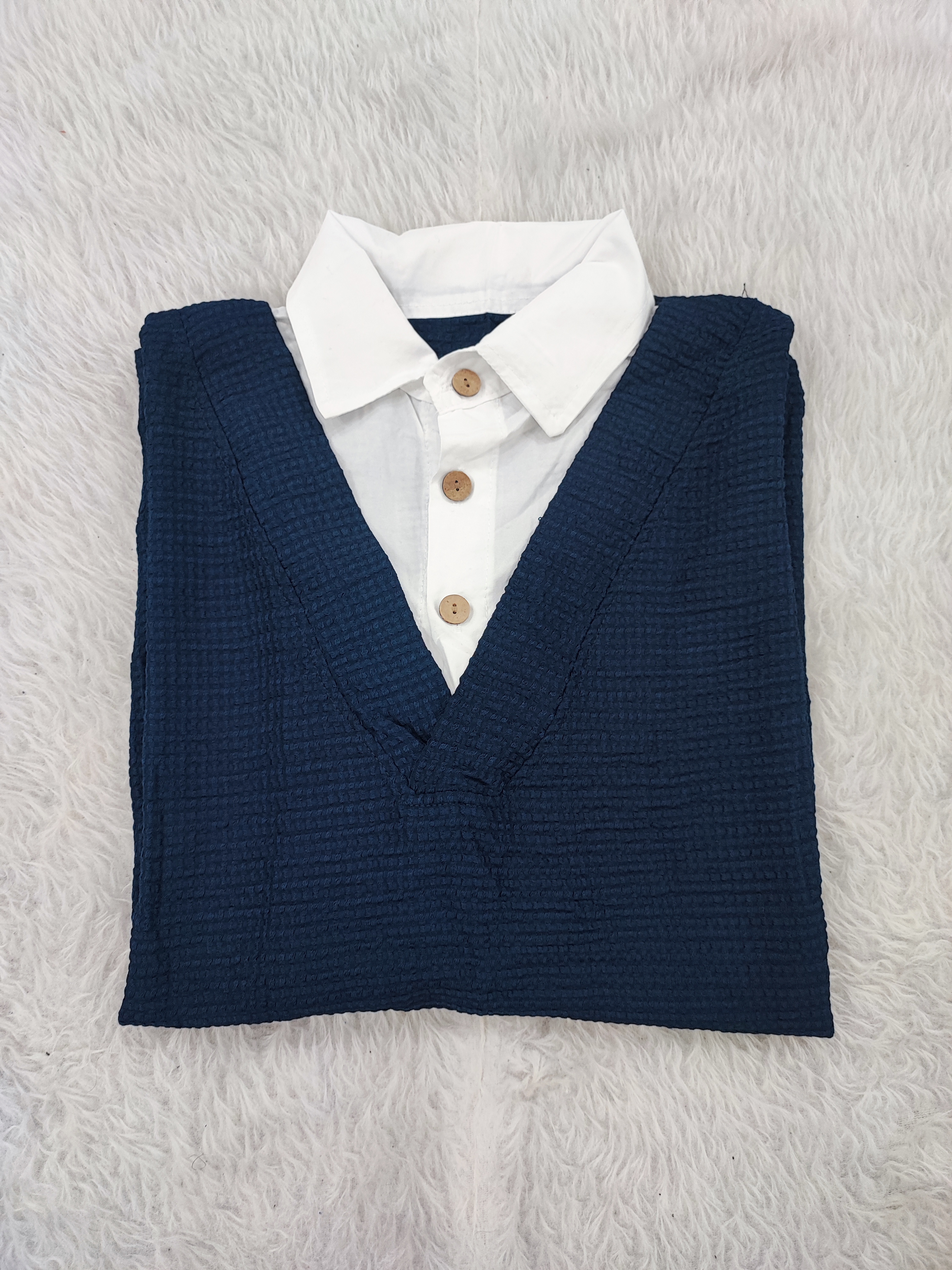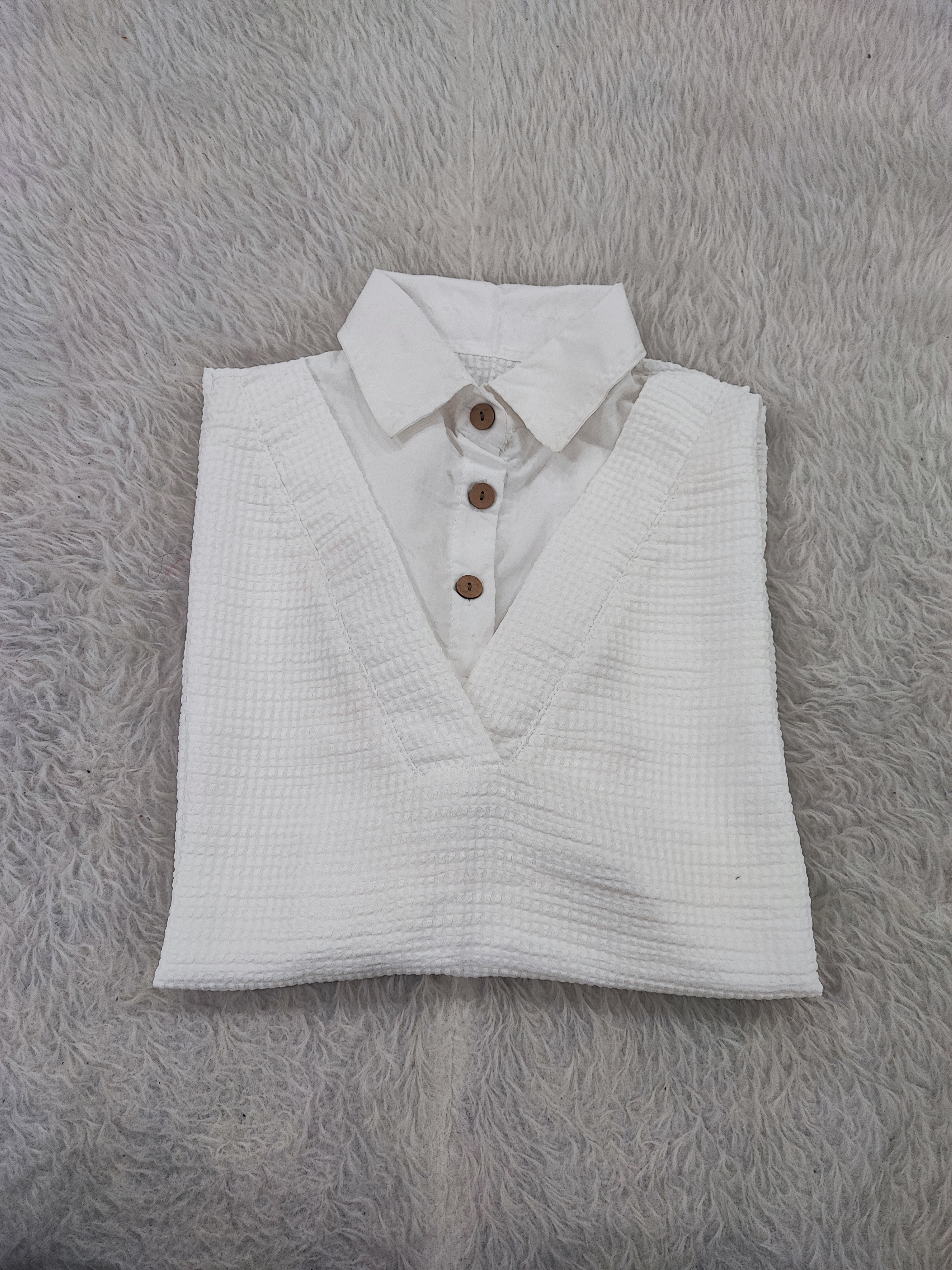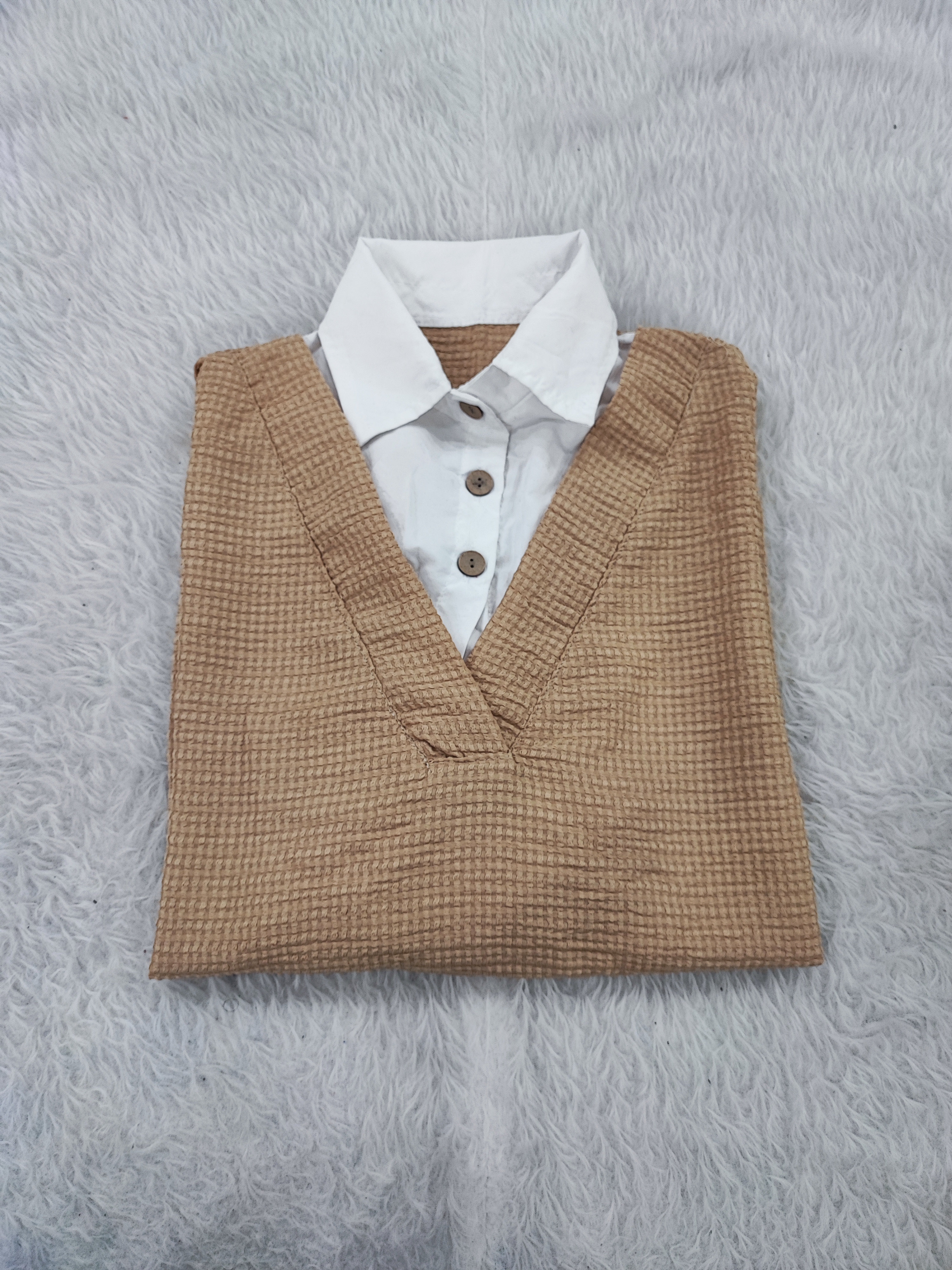 شومیز حصیری پفکی مدل یقه دار آستین بلند پاکتی فری تا سایز ۴۸ با قد ۸۰ سانت
