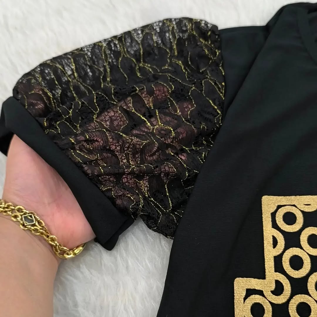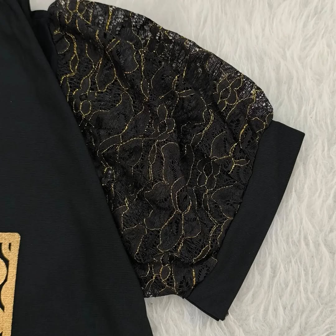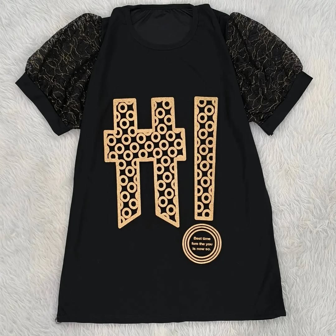 تیشرت آستین گیپوری تک رنگ مشکی جنس پنبه ویسکوز نرم فری تا سایز ۴۴ طرح Hi