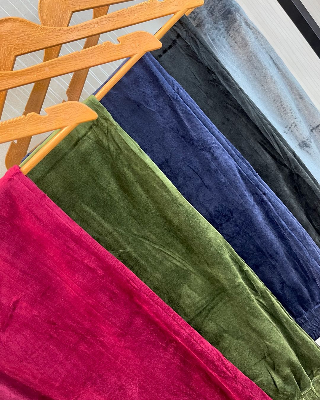 شلوار مخمل ساده جنس مخمل ساده خارجی نرم و لطیف مدل کمر کشی پاچه پاکتی فری تا سایز ۵۲ در رنگبندی