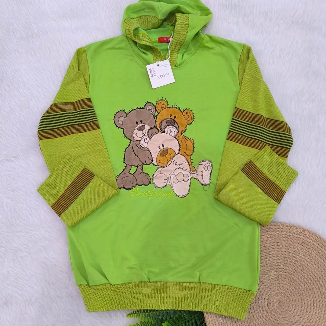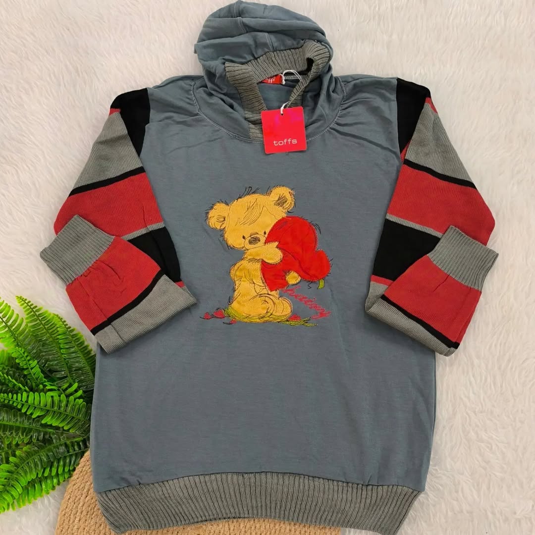هودی دورس آستین بافت خارجی مارک toffs دخترانه مناسب از ۷ سال تا ۱۵ سال با عرض سینه ۴۸ و قد ۶۰ سانت در رنگبندی با جنس دورس نرم و آستین بافت نرم