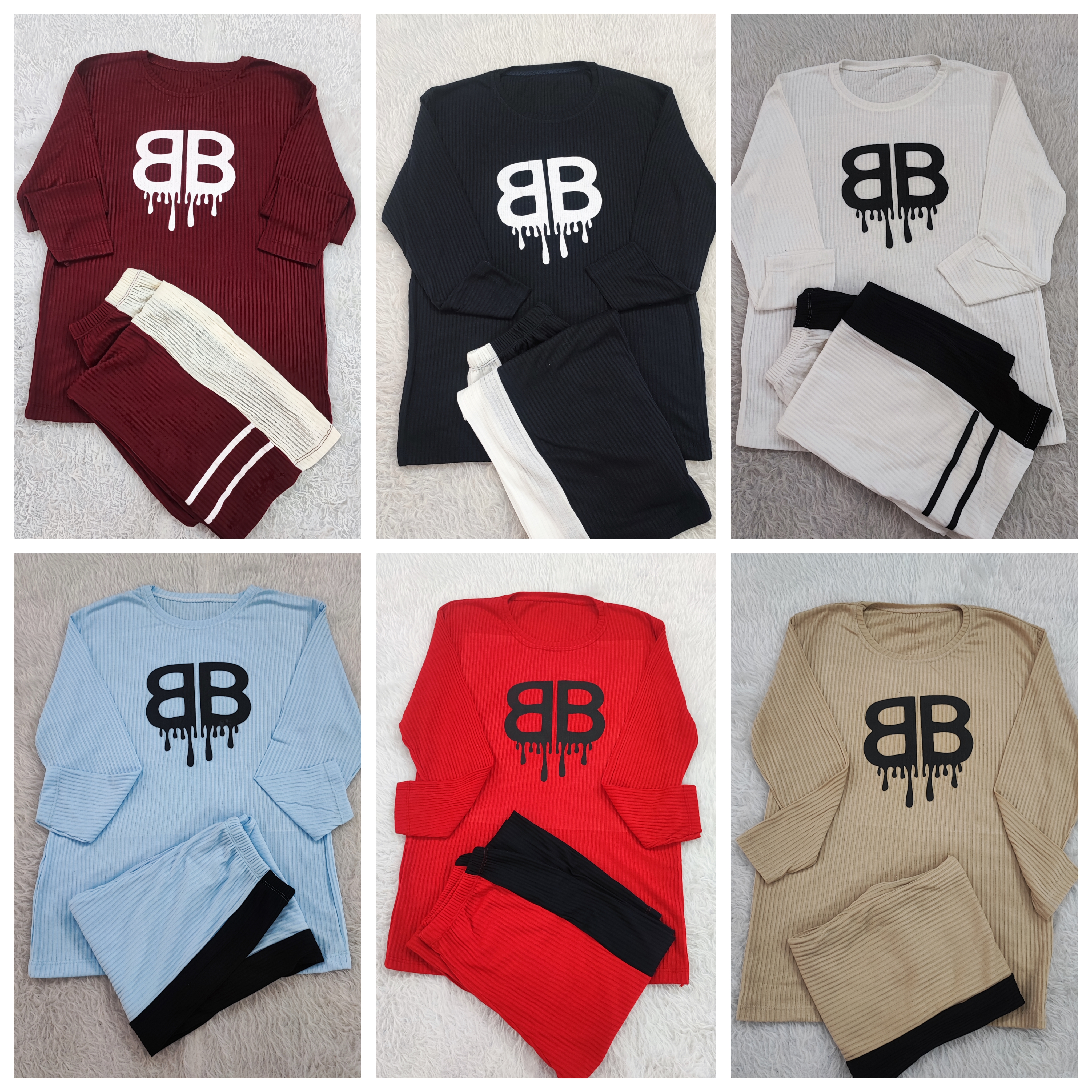 ست بلوز شلوار آستین بلند کبریتی B نرم و لطیف فری تا سایز ۴۴ با عرض سینه ۵۳ و قد بلوز ۷۰ و قد شلوار ۱۰۰ سانت مدل شلوار کمر کش بگ راحت و آزاد در رنگبندی