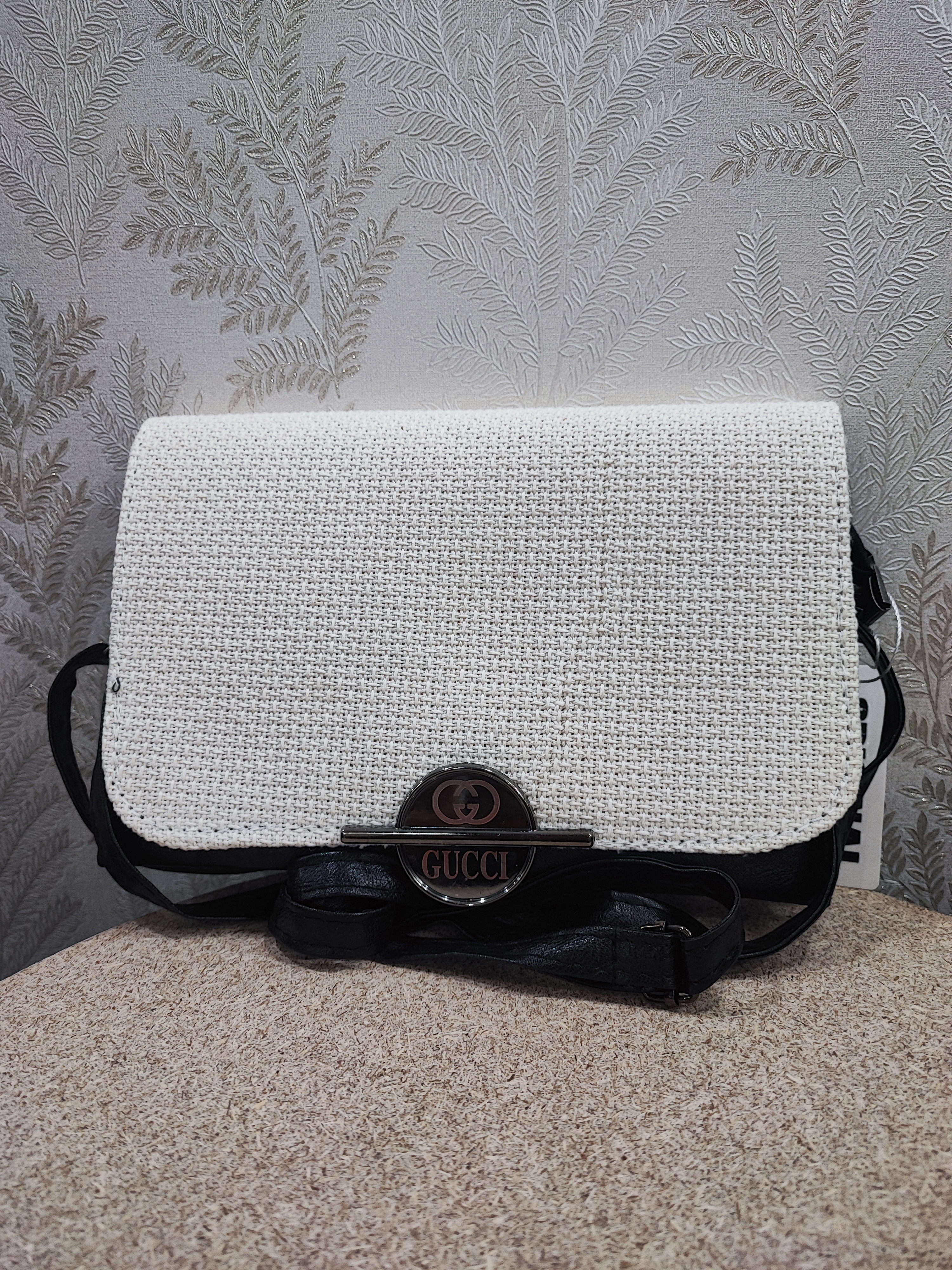 کیف دوشی کنفی GUCCI جادار پشت چرمی با بند بلند زنجیری با سه جای مجزا ابعاد ۳۰ در ۱۸
