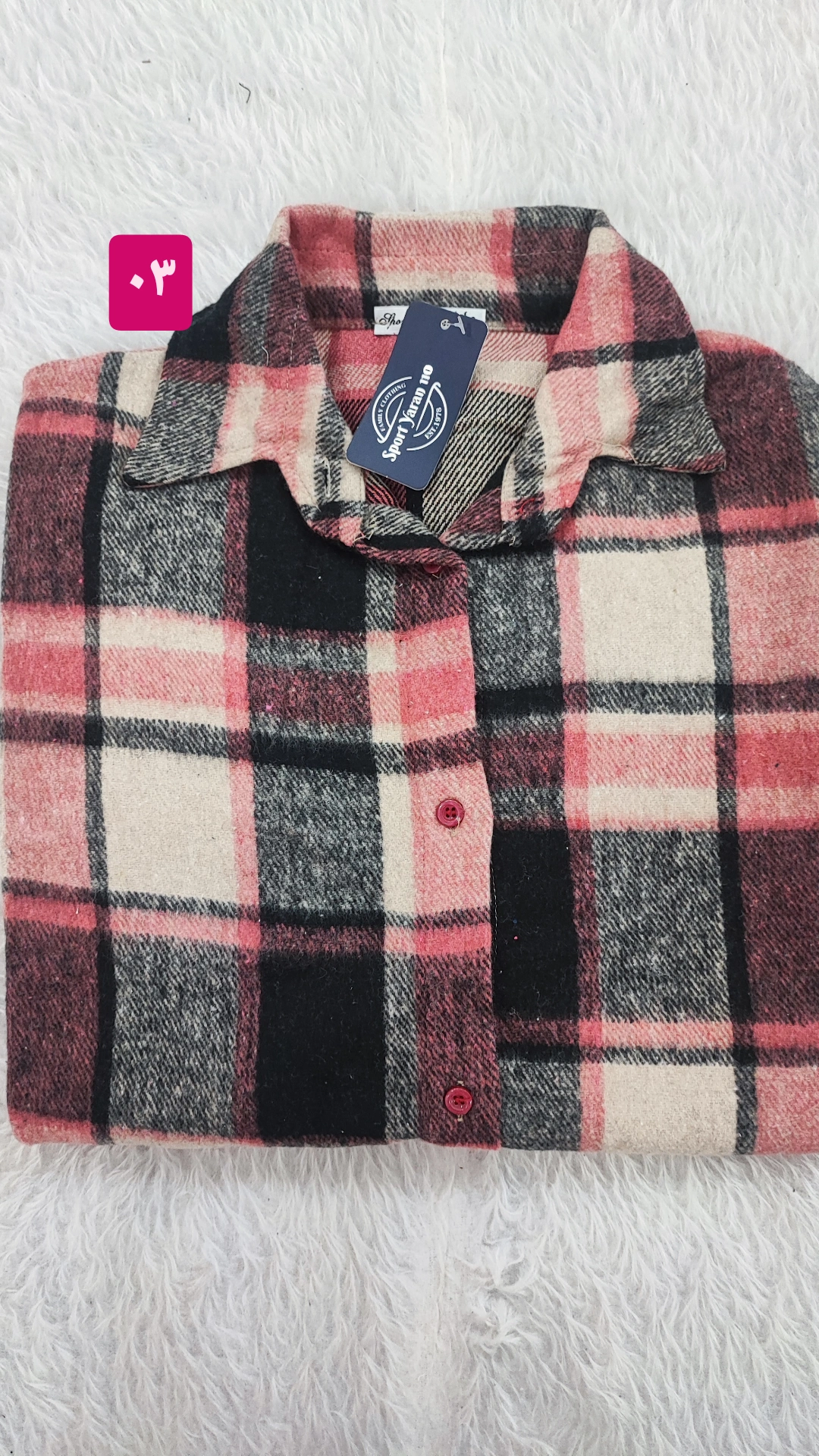 شکت پشمی چهارخونه زنانه با جنس پشمی نرم و گرم فری تا سایز ۴۶ با عرض سینه ۶۰ سانت با قد ۷۵ سانت در ۵ طرح