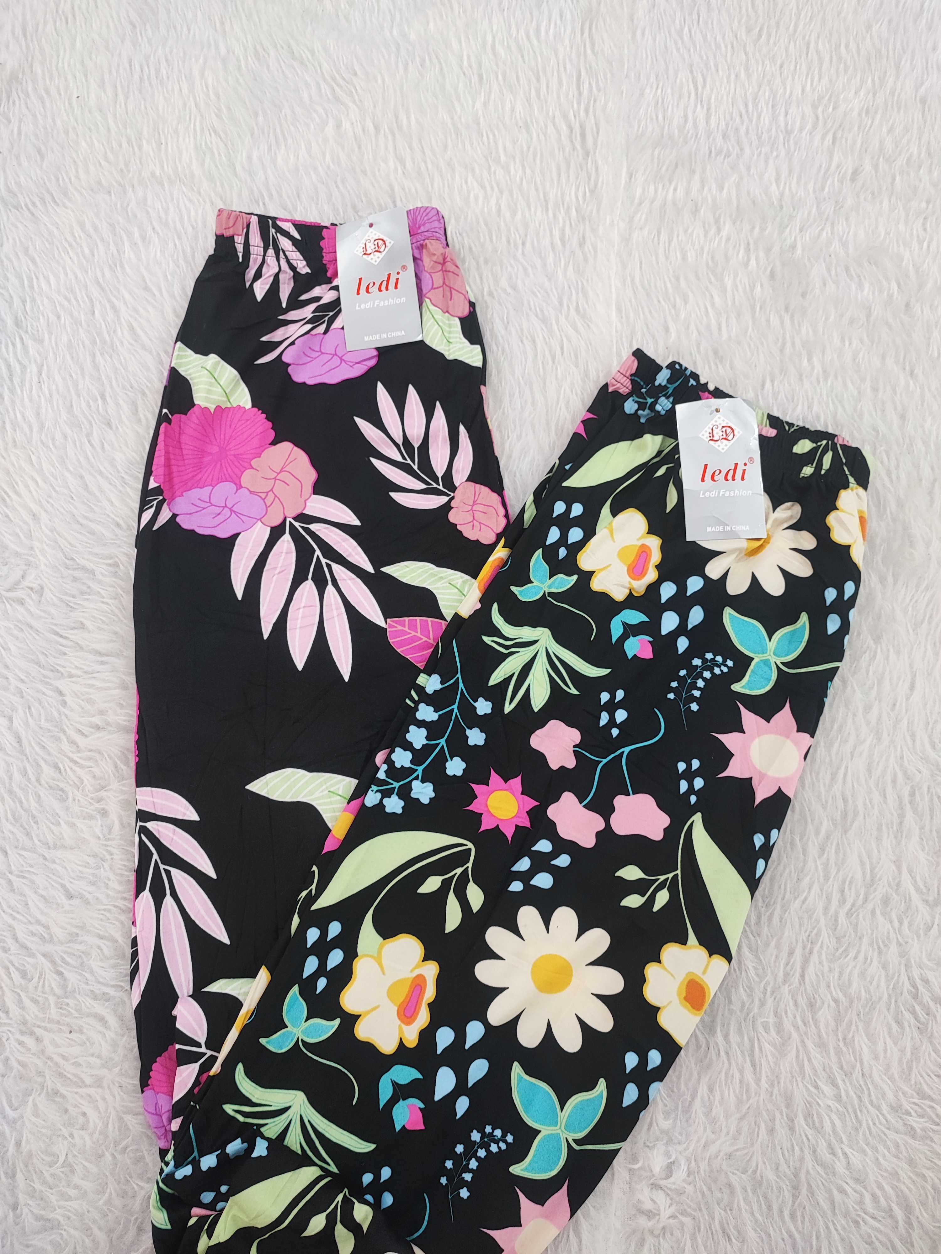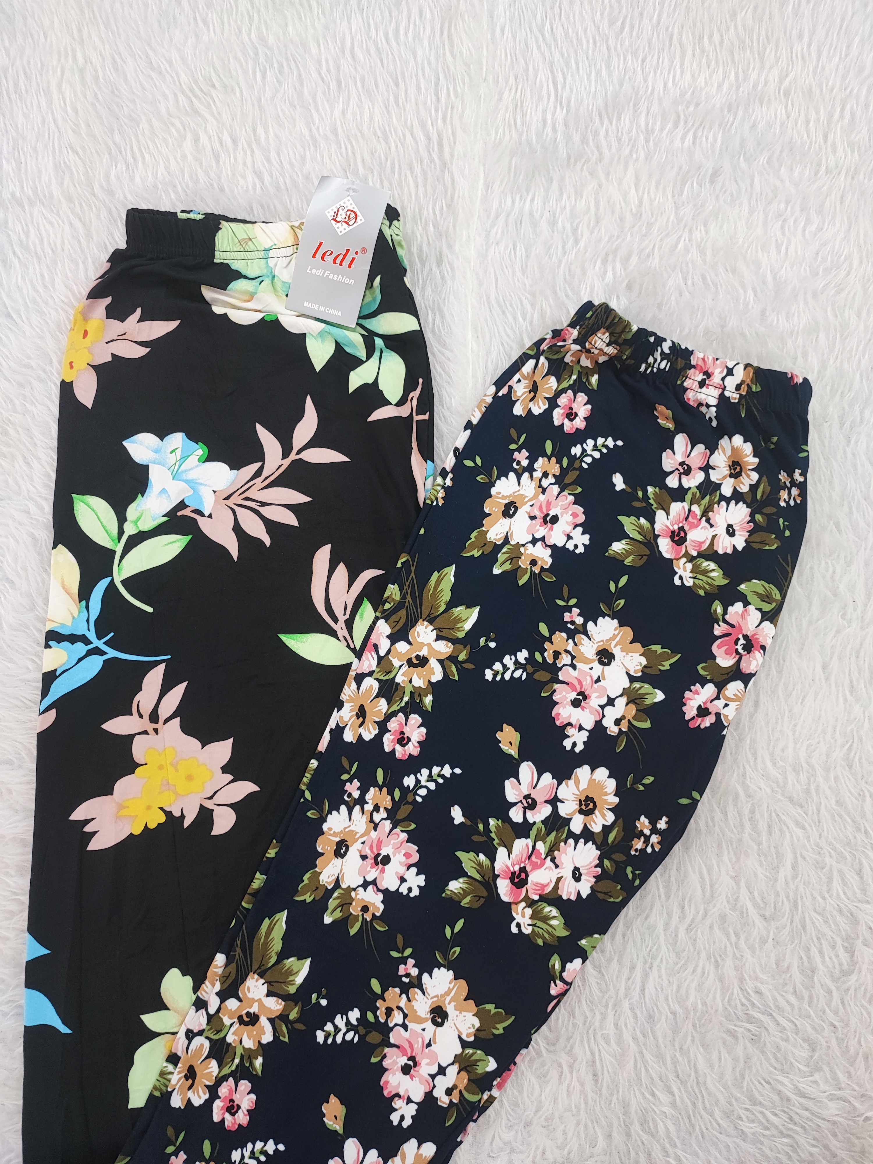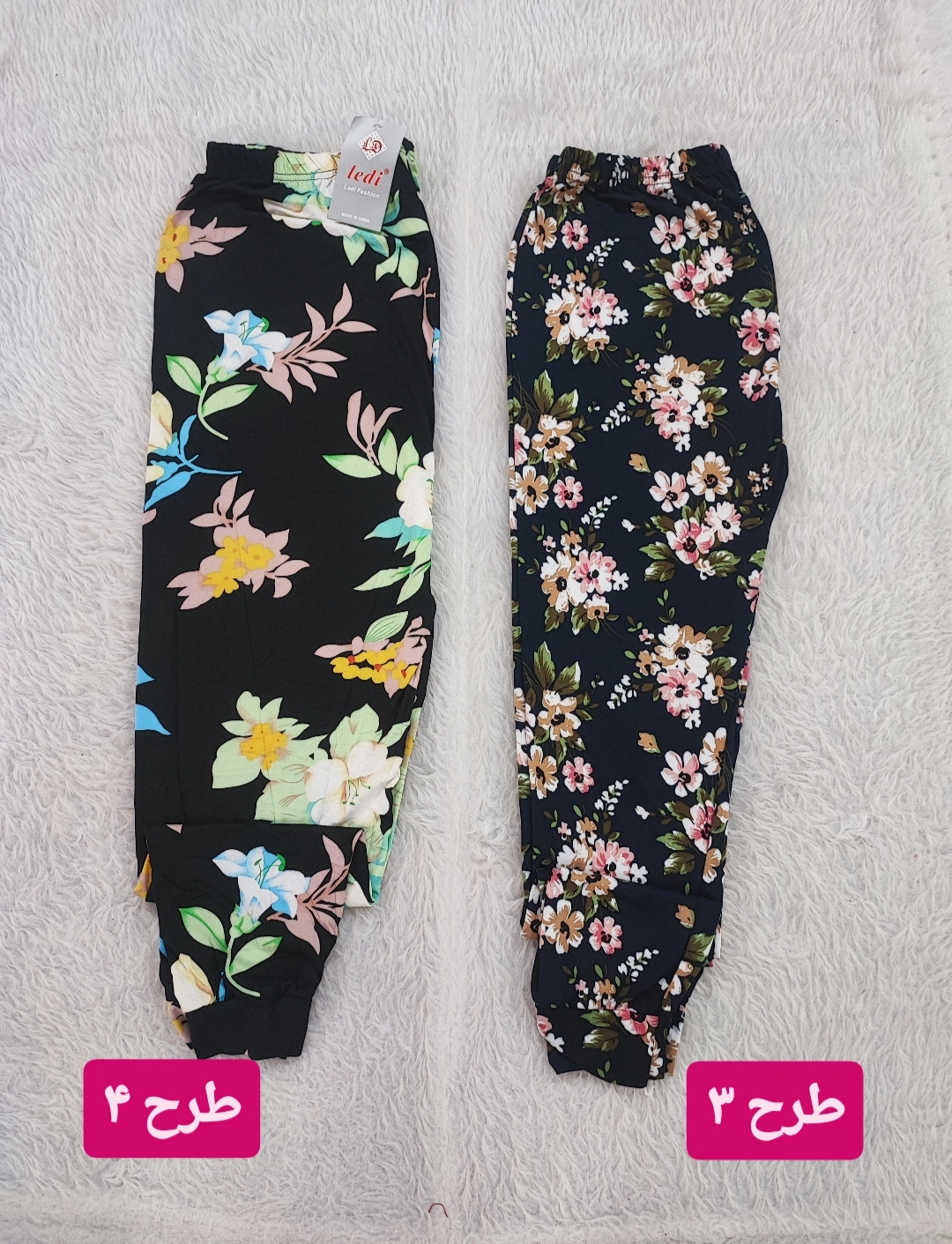 شلوار راحتی گلدار زنانه خارجی فری تا سایز ۵۲ در ۴ طرح زیبا با جنس نرم و لطیف پنبه گیاهی خارجی مدل کمر کشی پاچه پاکتی