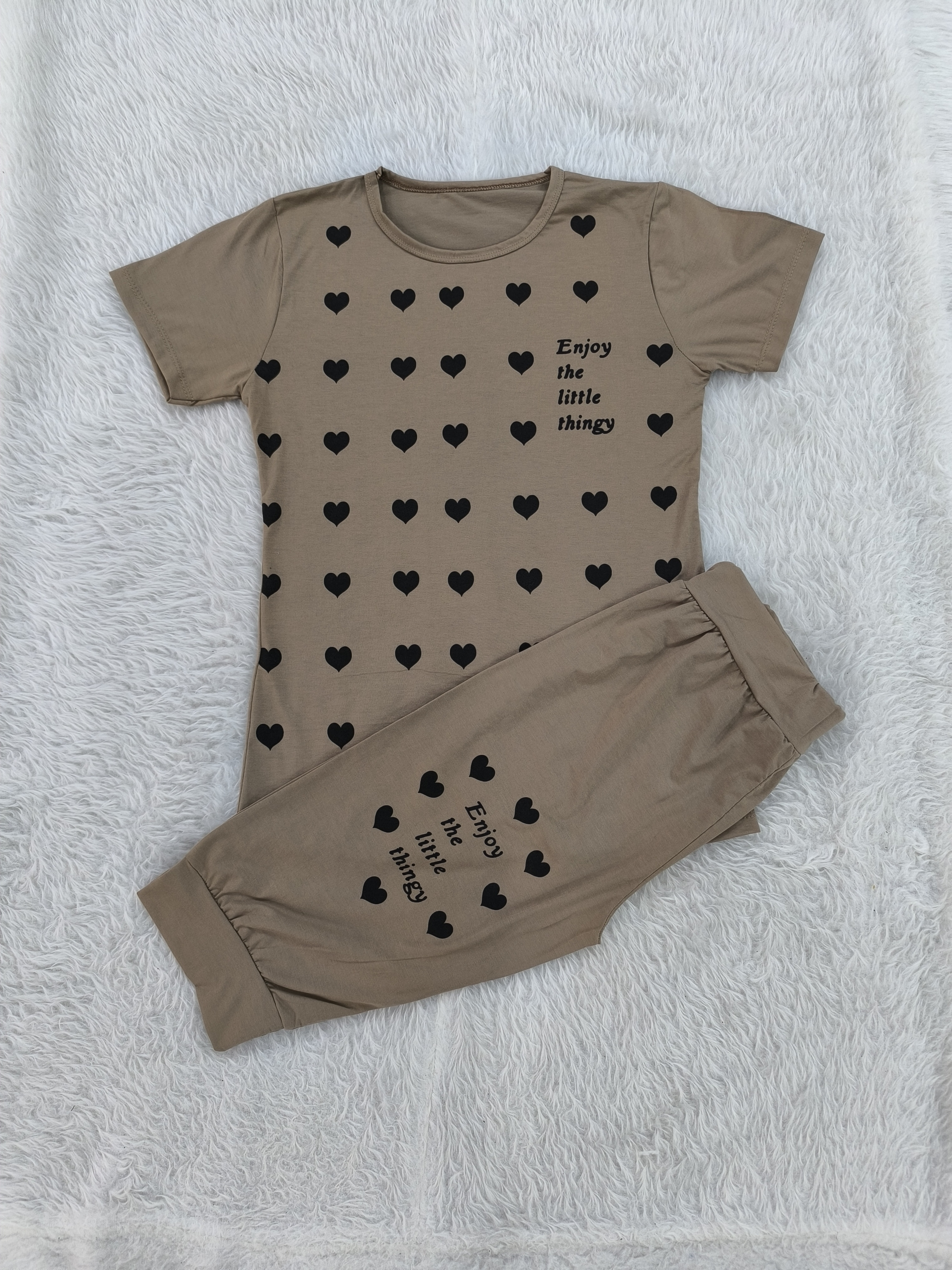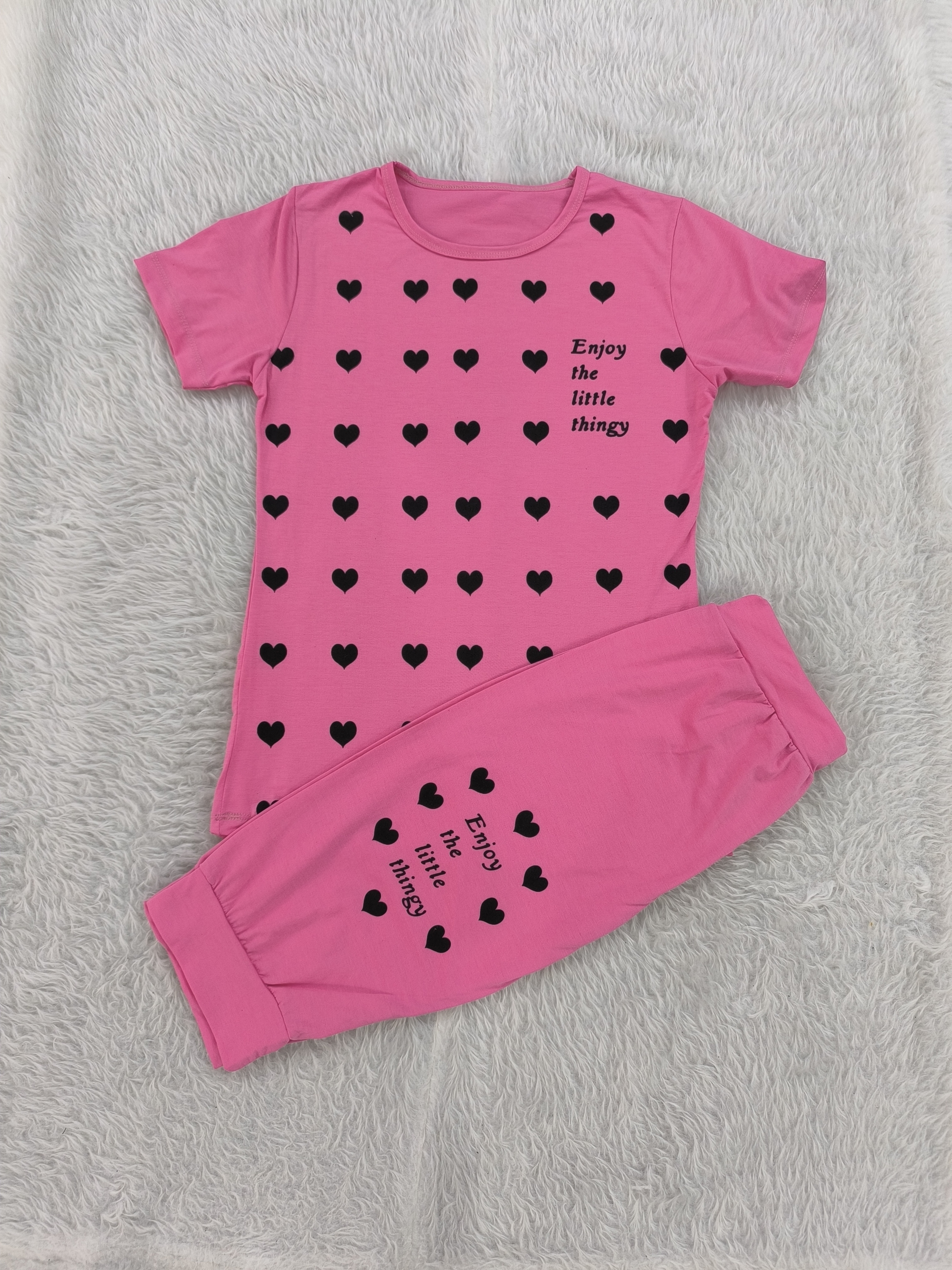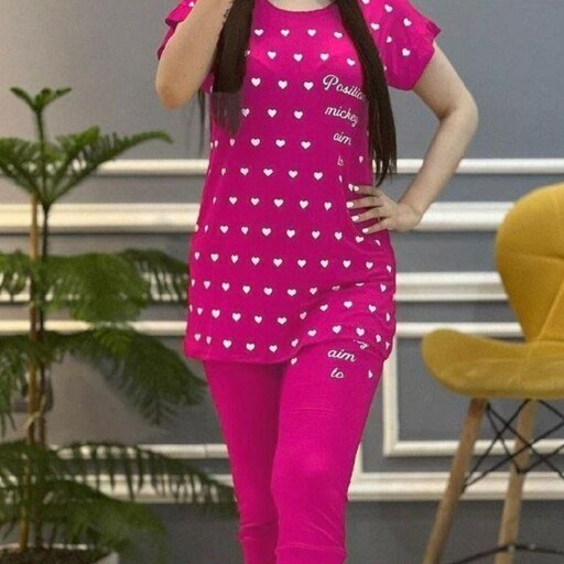 ست تیشرت شلوارک قلبی دخترانه با جنس پنبه ای مناسب از ۸ سال تا سایز ۳۸ دخترانه زنانه