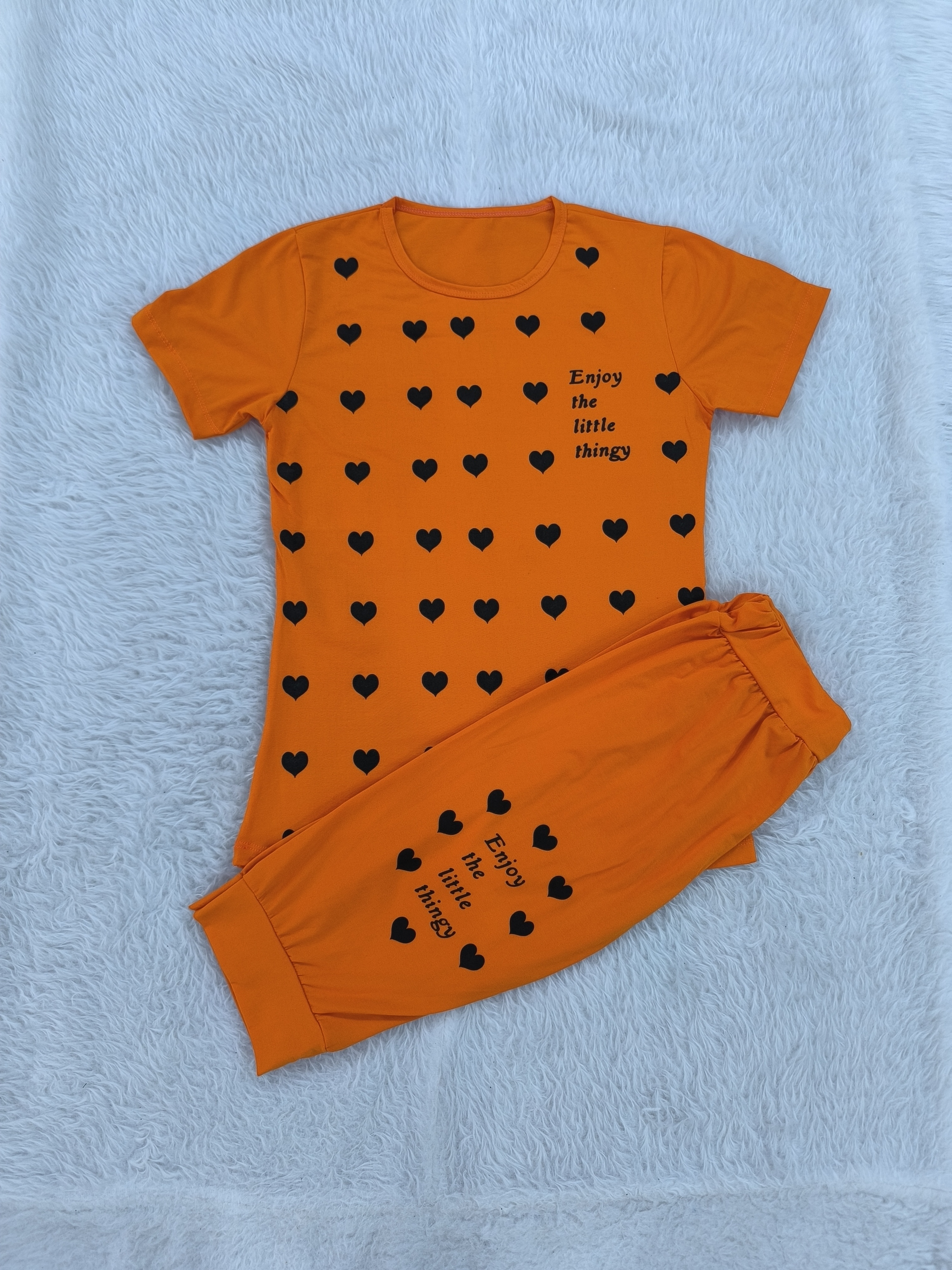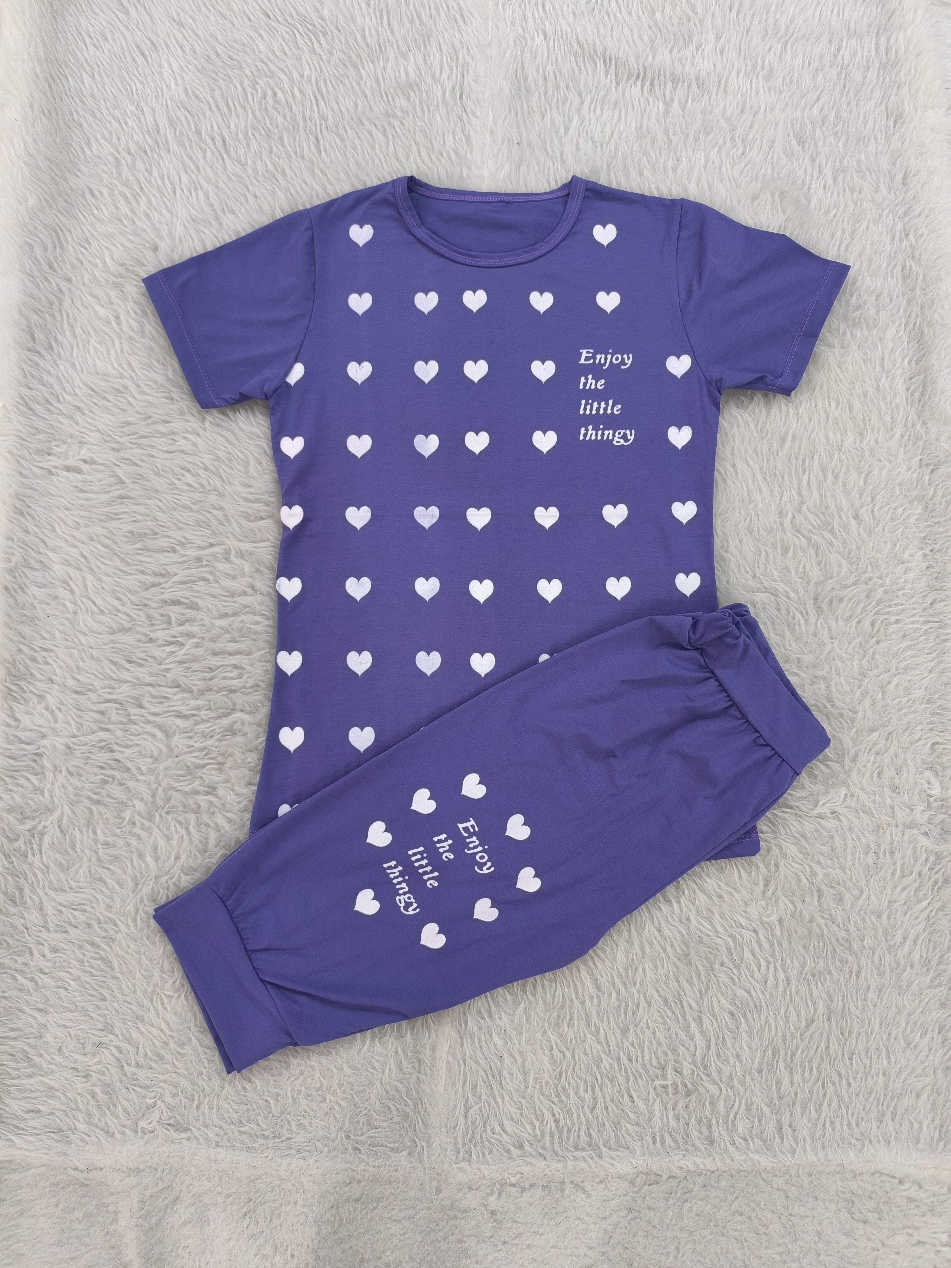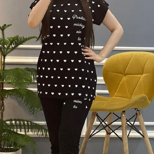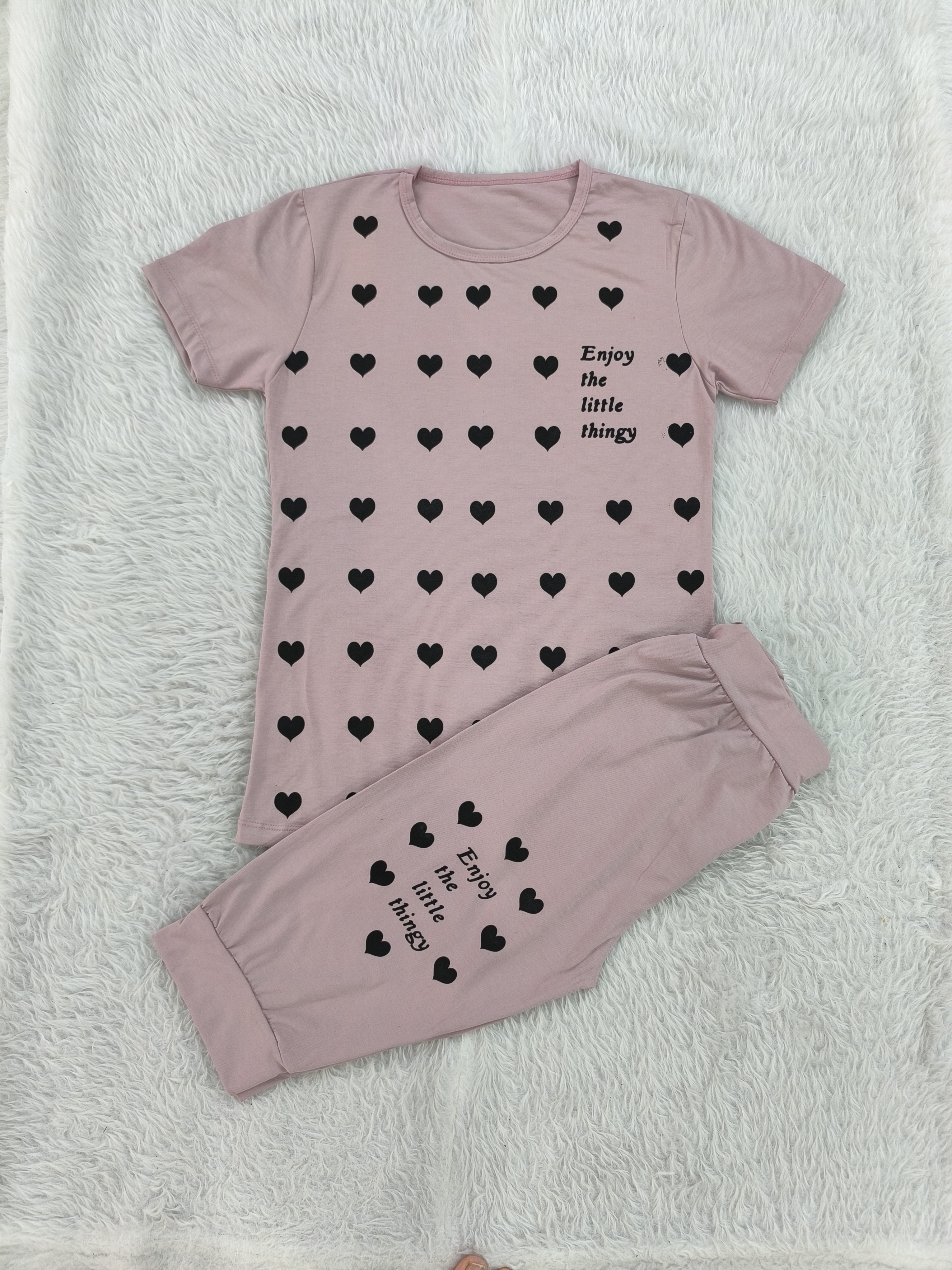 ست تیشرت شلوارک قلبی دخترانه با جنس پنبه ای مناسب از ۸ سال تا سایز ۳۸ دخترانه زنانه