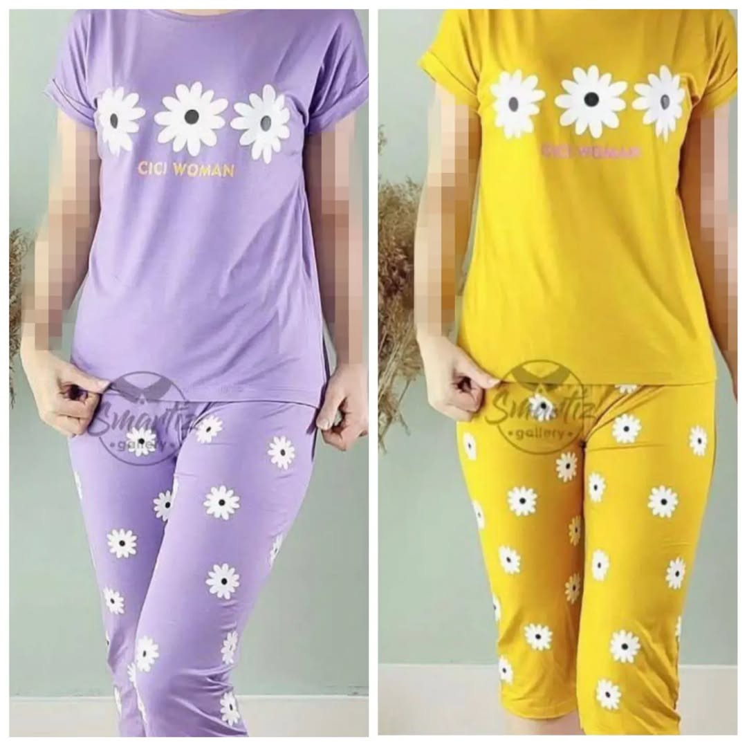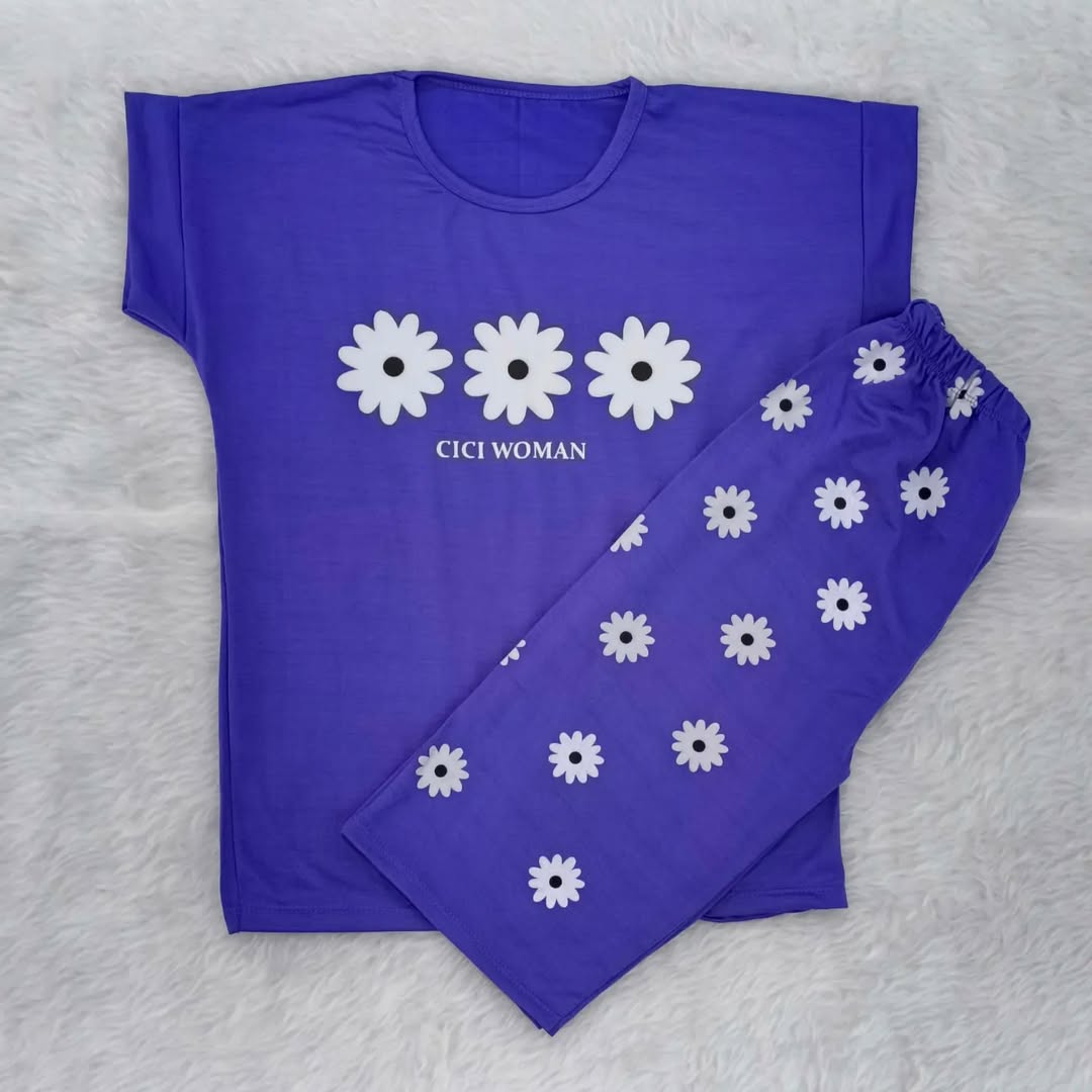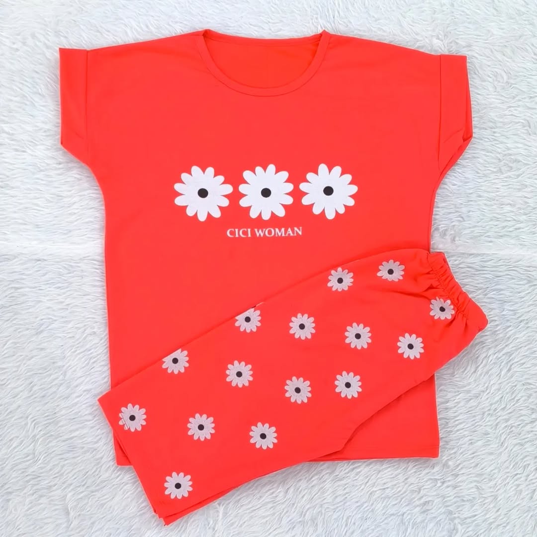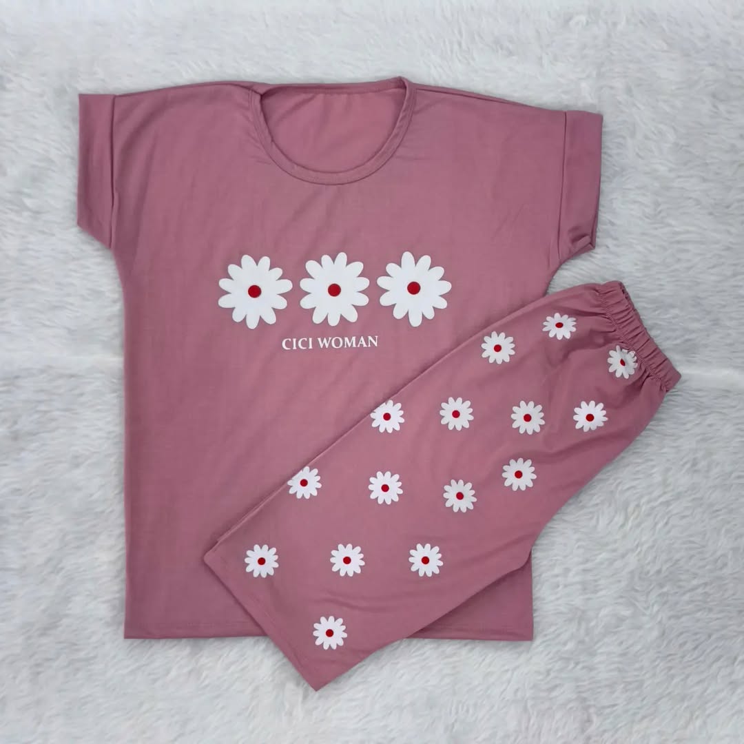 ست تیشرت شلوارک گل بابونه با جنس پنبه ویسکوز مناسب از ۱۰ سال به بالا تا سایز ۳۸ زنانه دخترانه در رنگبندی ۶ رنگ با قد تیشرت ۶۵ و شلوارک ۵۵ سانت