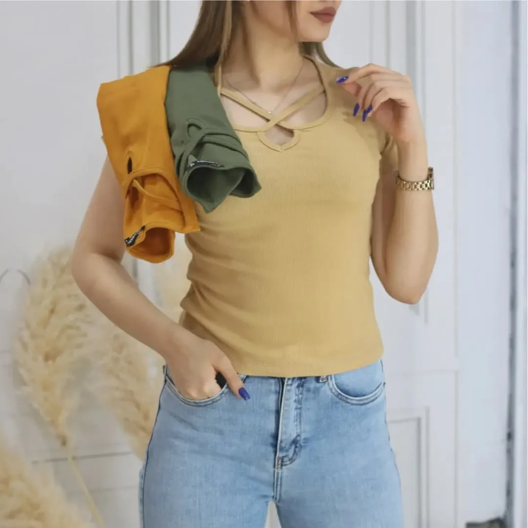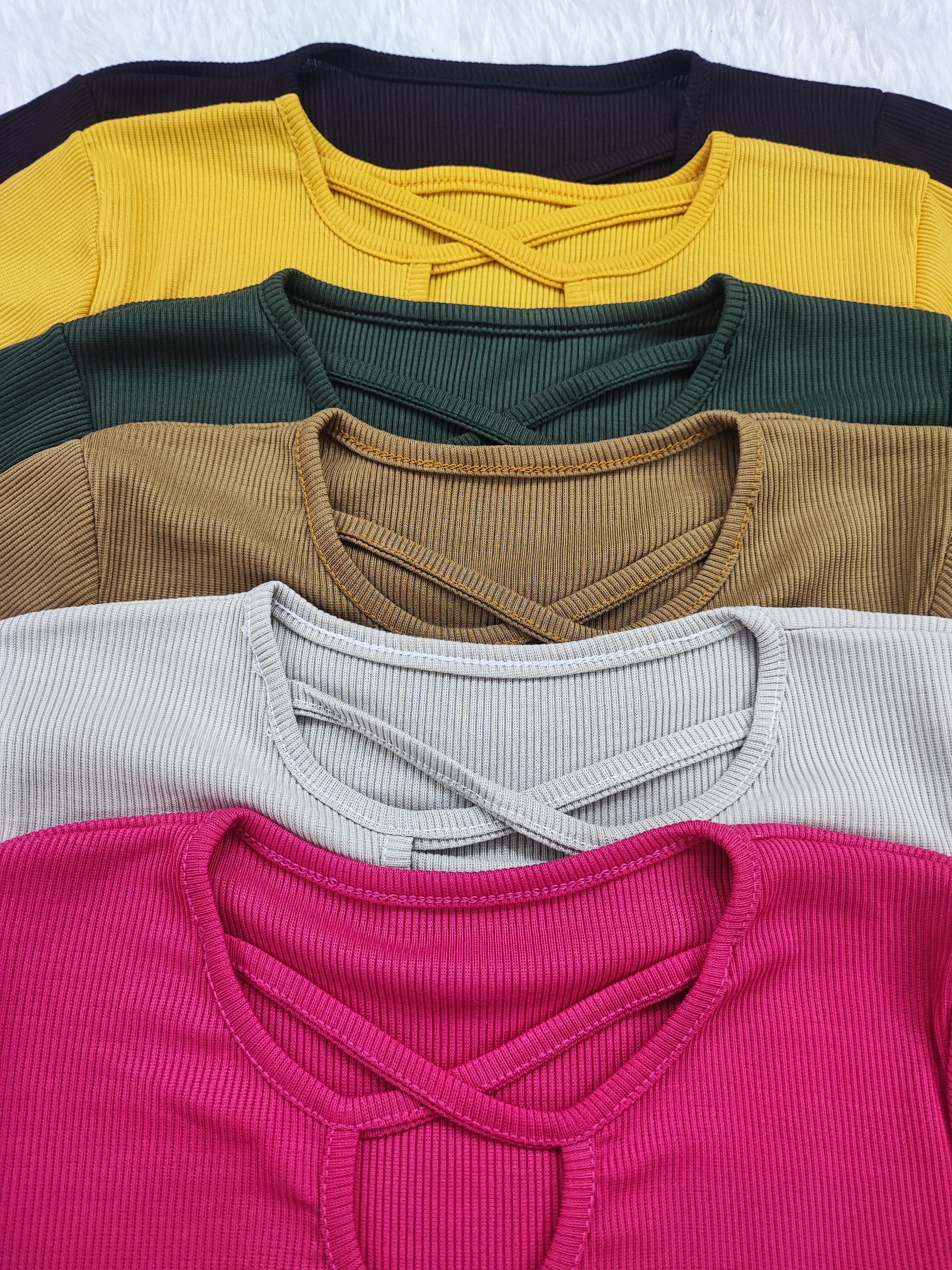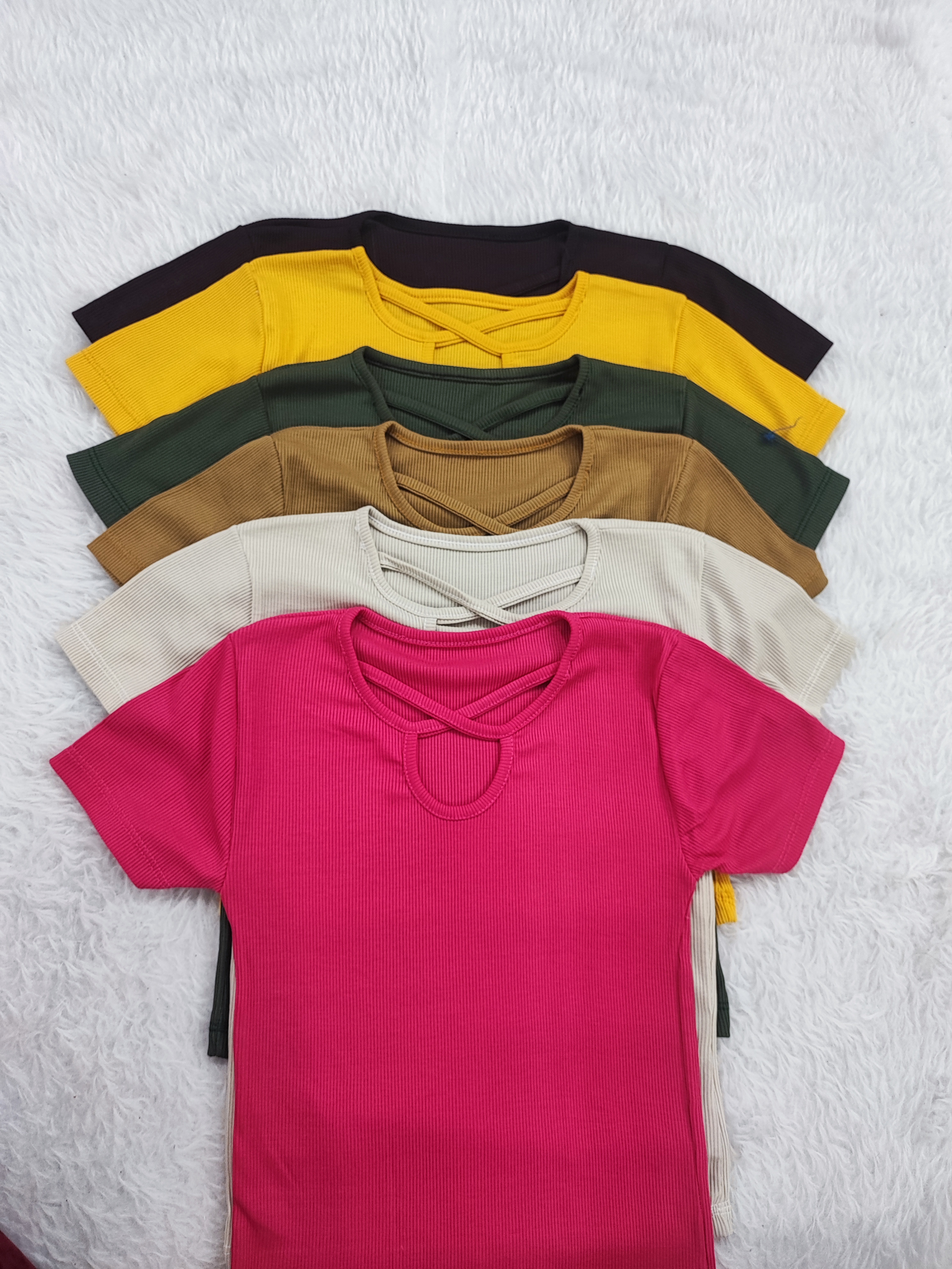 تیشرت کراپ کبریتی یقه ضربدری فری از ۷ سال به بالا تا سایز ۴۰ زنانه با قد ۵۰ سانت و عرض سینه ۴۸ سانت در رنگبندی
