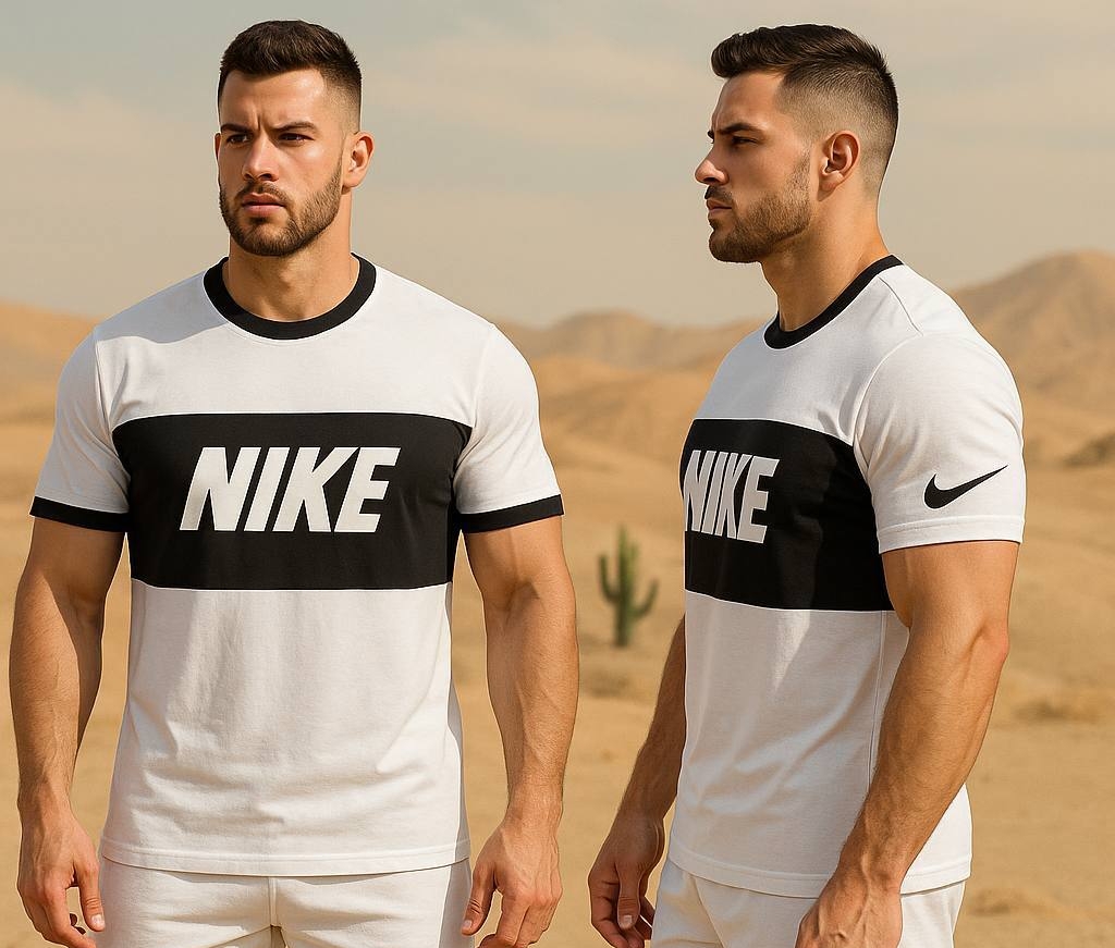 تیشرت NIKE مردانه با جنس نخ پنبه با کیفیت در دو رنگ مشکی و سفید با سایزبندی کامل ( M و L و XL و XXL) اندازه ها در جدول سایز موجوده