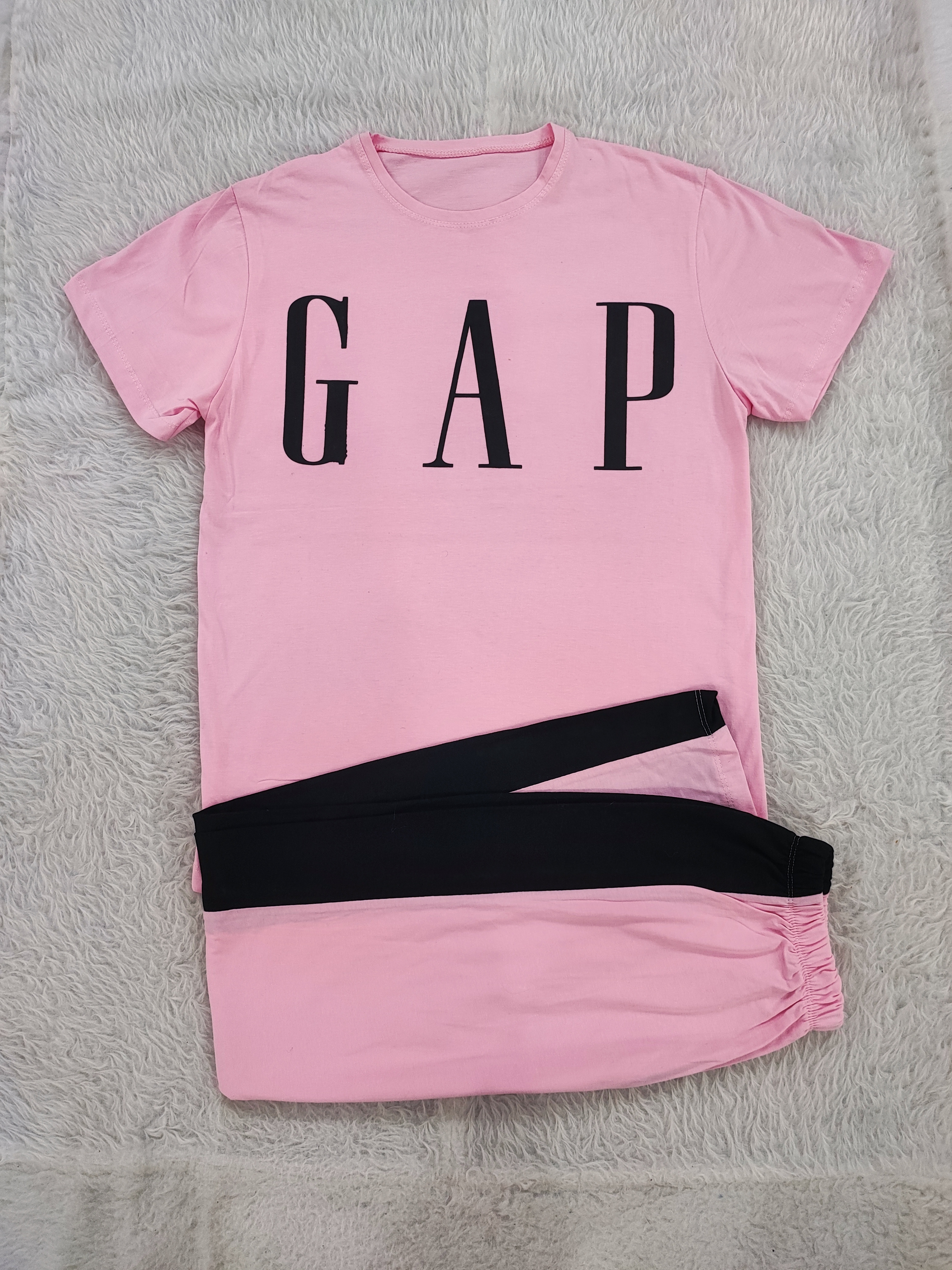 ست تیشرت شلوار بگ مدل گپ فری تا سایز ۴۴ جنس پنبه لاکرا ۱۰۰% تضمینی با قد بلوز ۷۰ و قد شلوار ۱۰۵ سانت